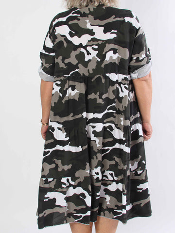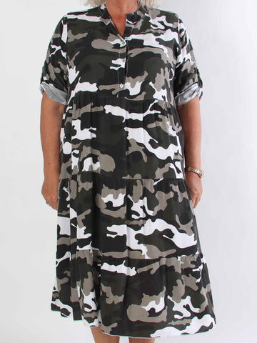 Dotti Camo - Kjole med camouflageprint i viskose med lag på lag look