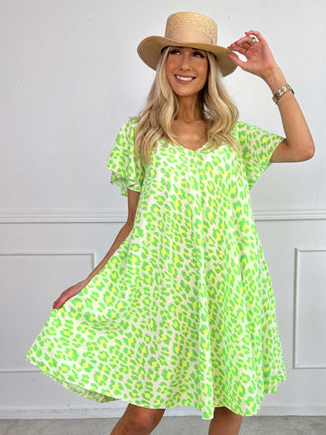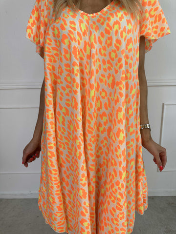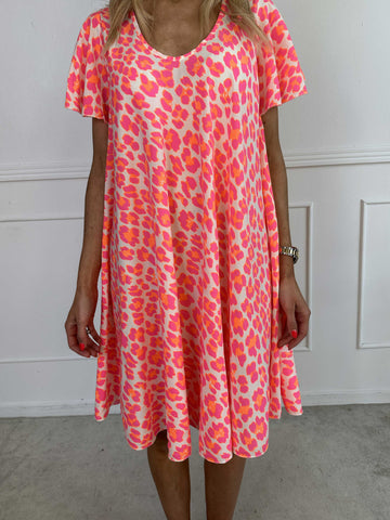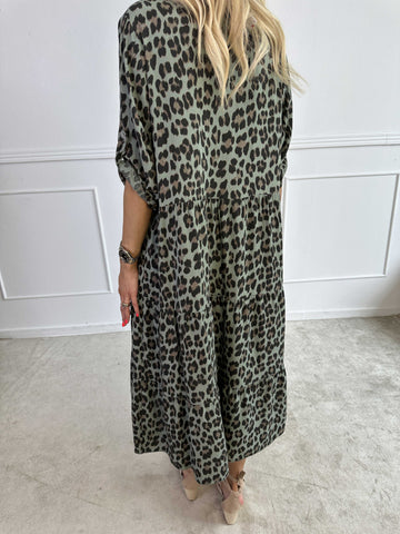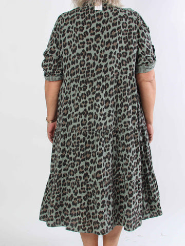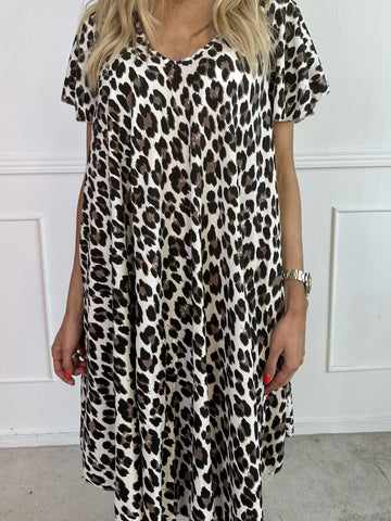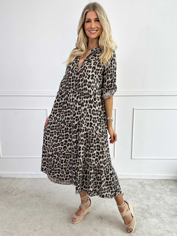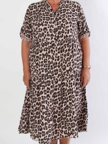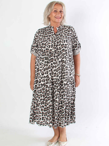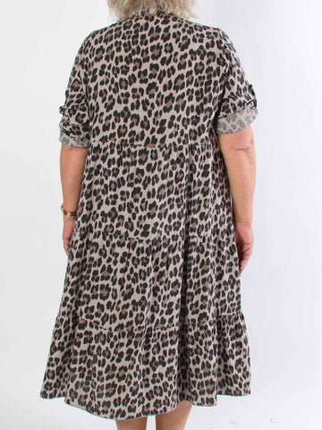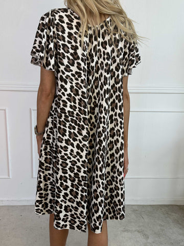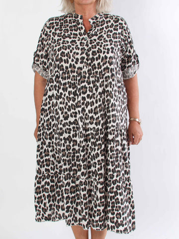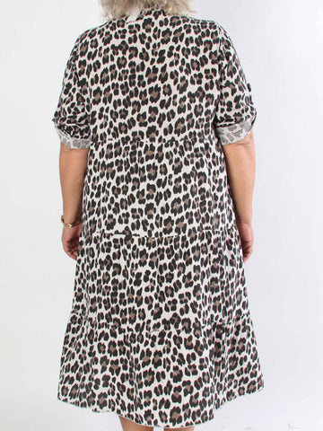 Dotti Leo - Kjole med leopardprint i viskose med lag på lag look