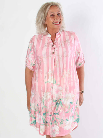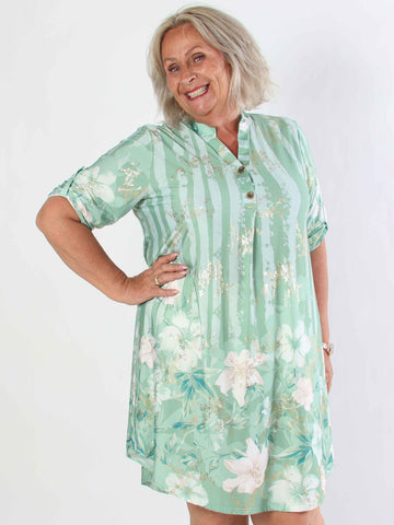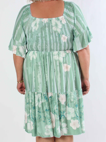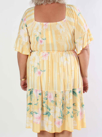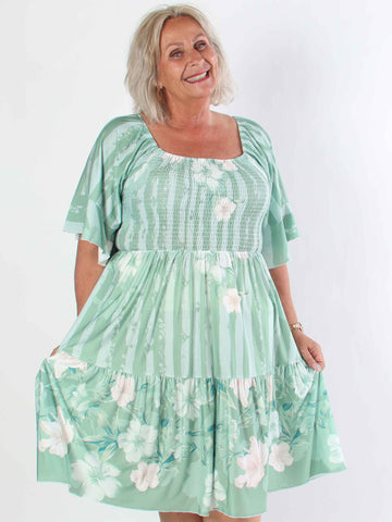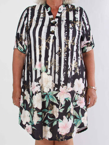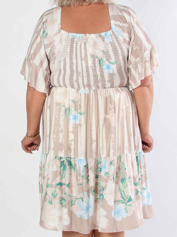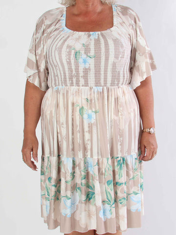 Elna Floral Stripe Short - Elastisk plus size kjole med smock over brystet