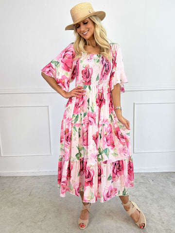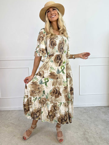 Milano Floral Viscose Midi - Kjole i viskose med blomsterprint