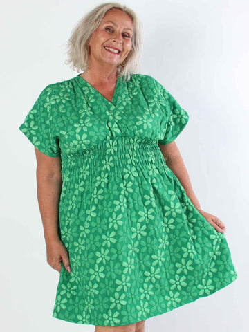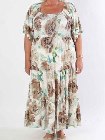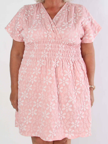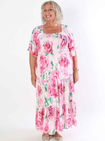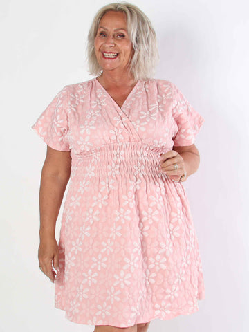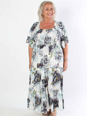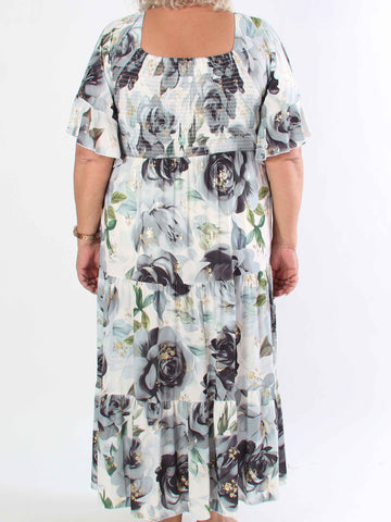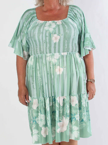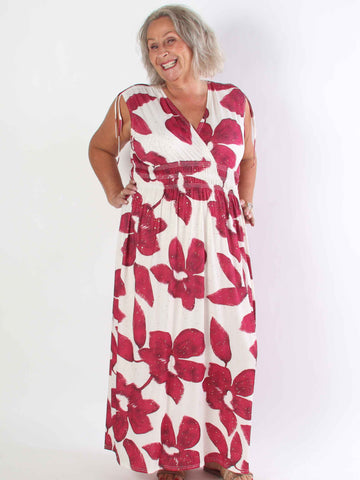 Elna Flower - Plus size elastisk kjole med smock over brystet