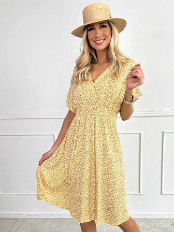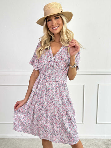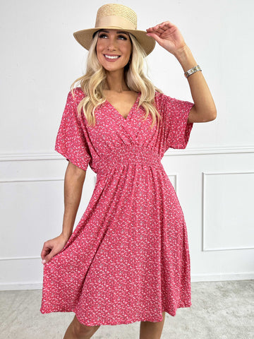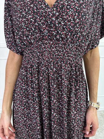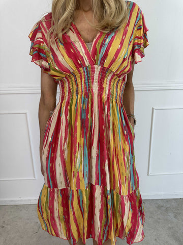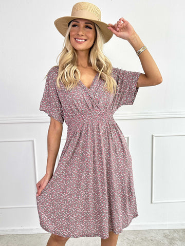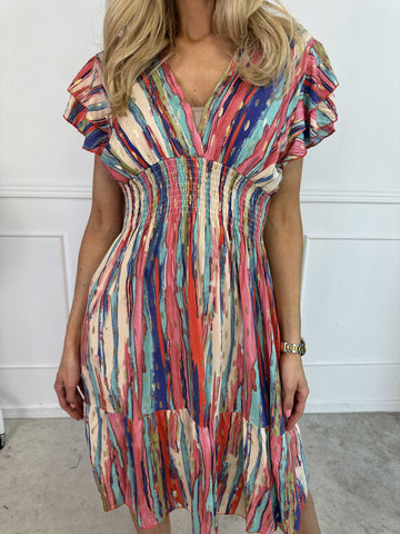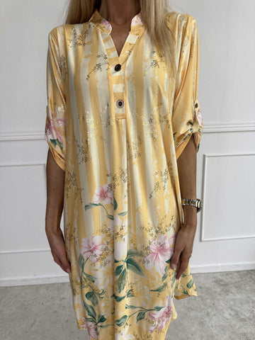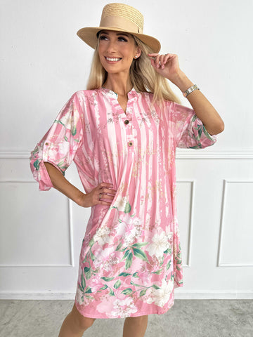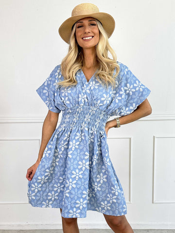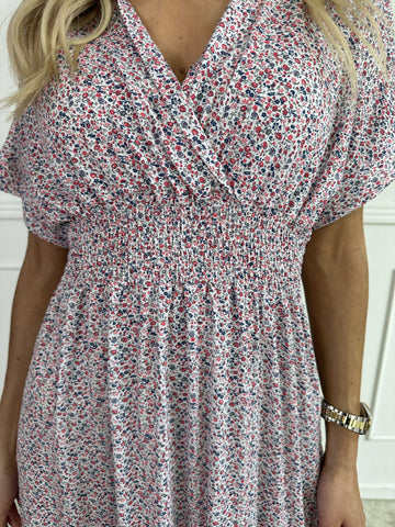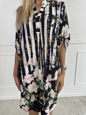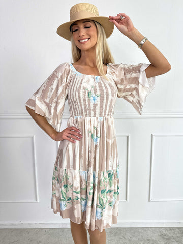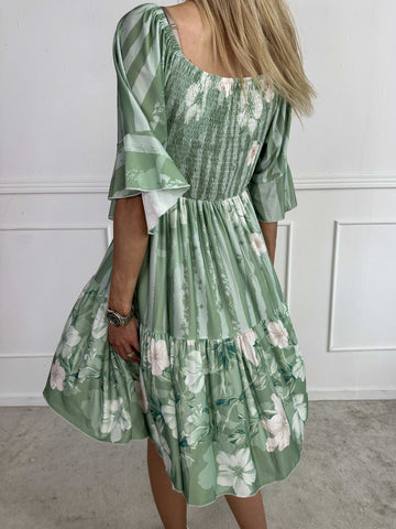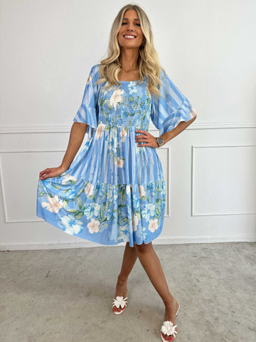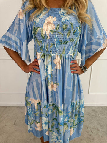 Elna Floral Stripe Short - Blomstret elastisk kjole med smock over brystet