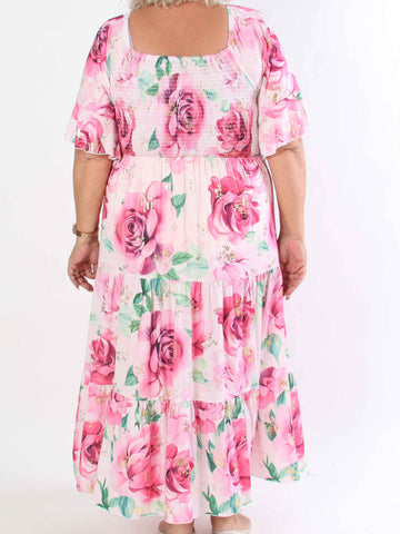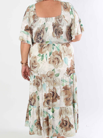 Milano Floral Viscose Midi - Plus size kjole i viskose med blomsterprint