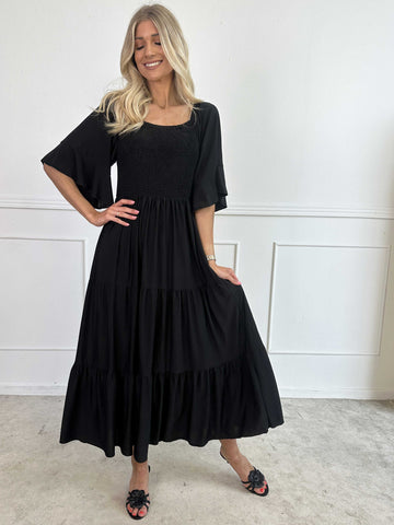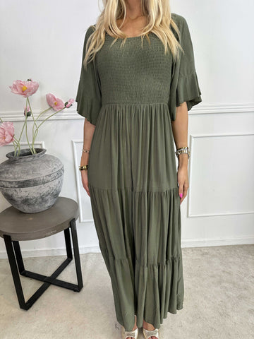 Elna Plain - Lang elastisk plain kjole med smock over brystet