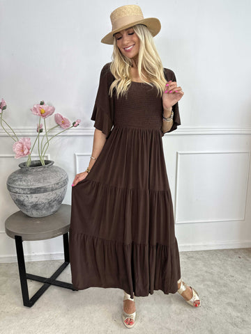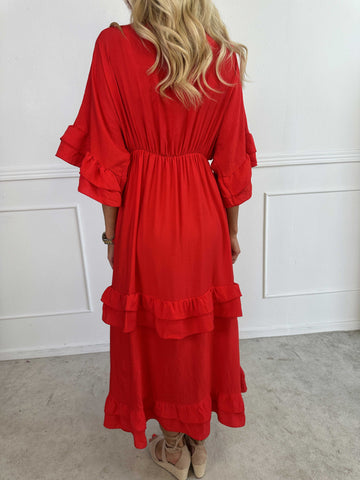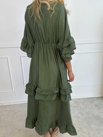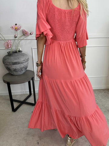 Europe - Sød lang kjole i viskose med flæsedetaljer