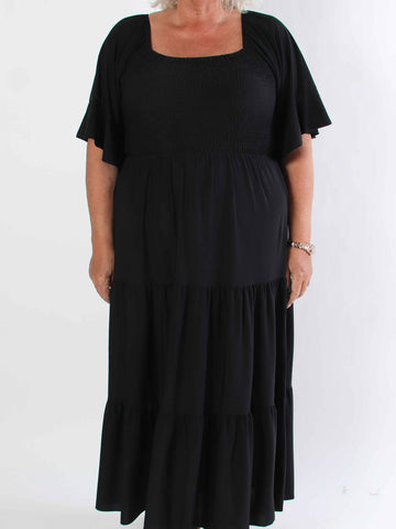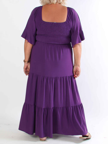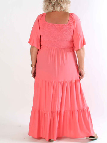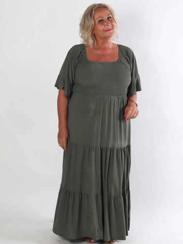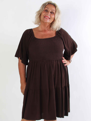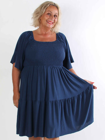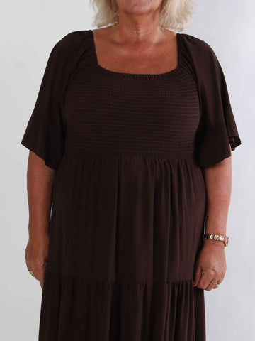 Elna Plain - Elastisk plain plus size kjole med smock over brystet