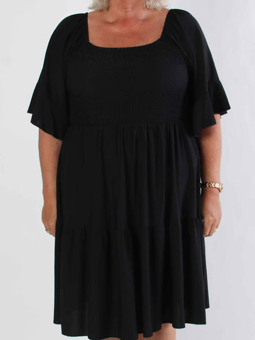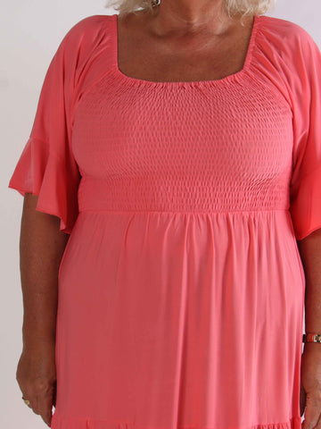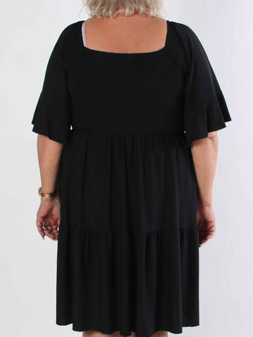 Elna Plain Short - Elastisk plain plus size kjole med smock over brystet