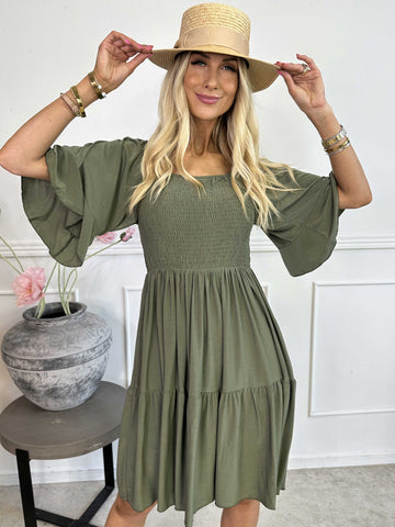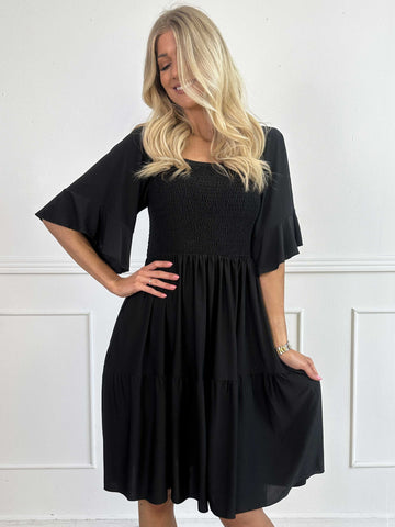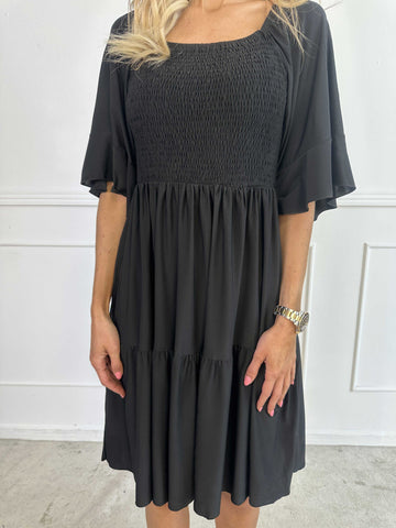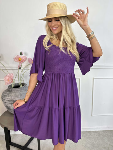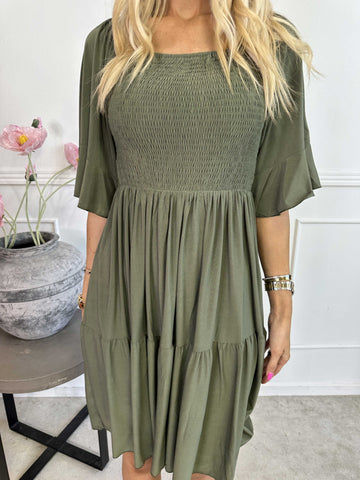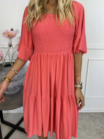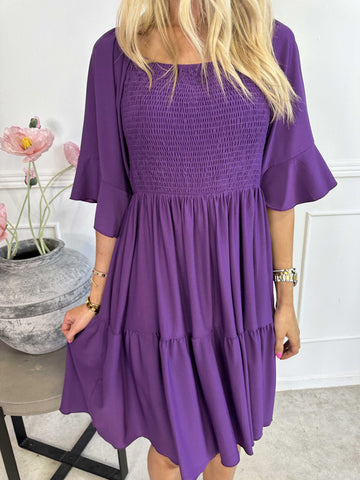 Elna Plain Short - Elastisk plain kjole med smock over brystet