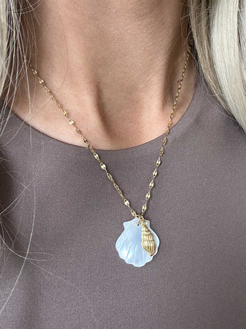 Erin - Guldfarvet kæde med muslinge vedhæng