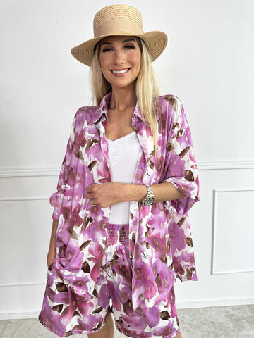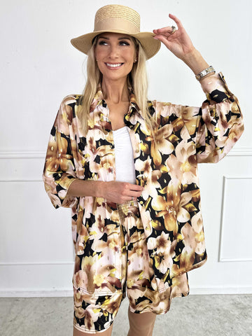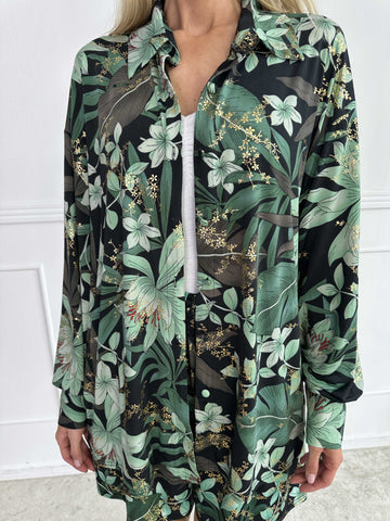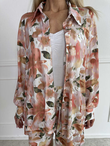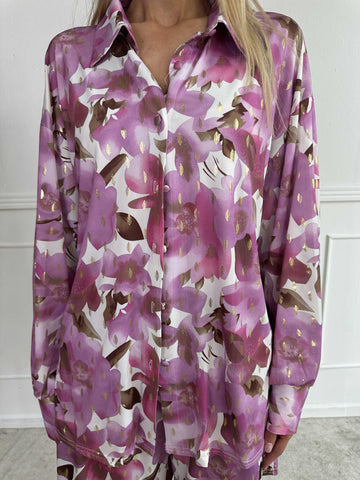 Pamy Sweet Flower - Skjorte i elastisk blomstret stof
