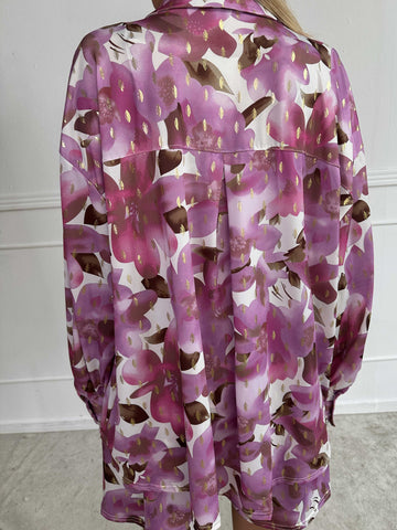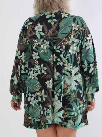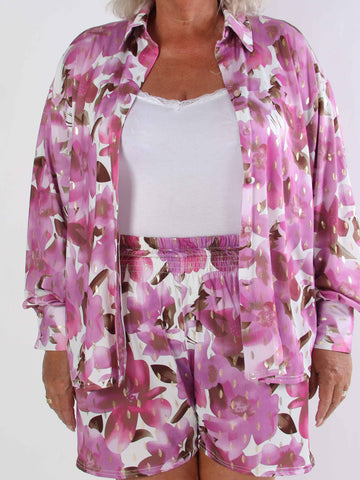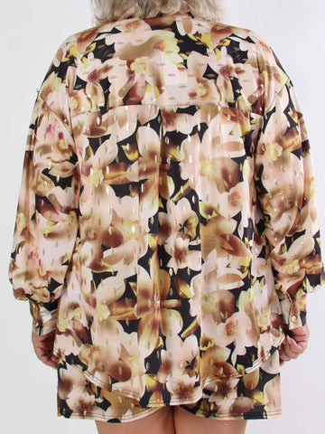 Pamy Sweet Flower - Plus size skjorte i elastisk blomstret stof