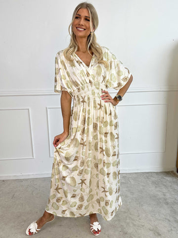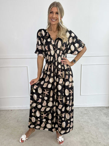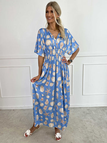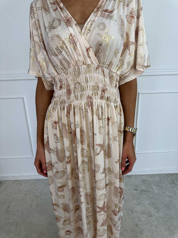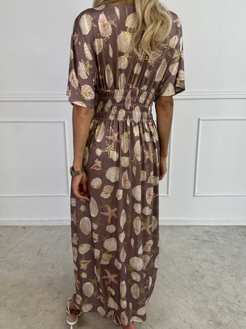 Pams Beach - Lang elastisk kjole med muslinge motiver