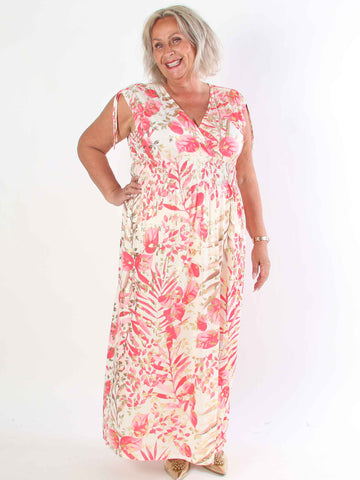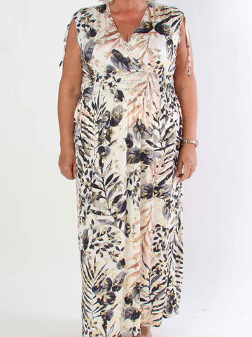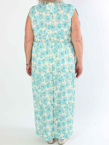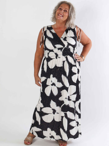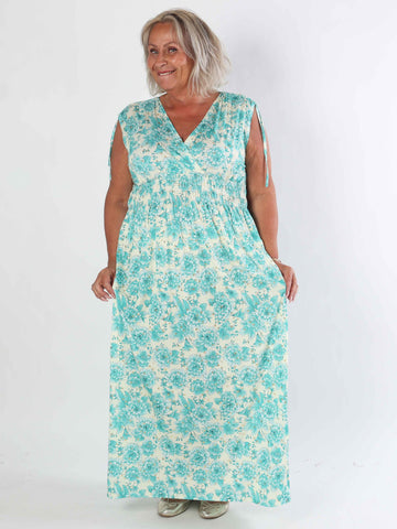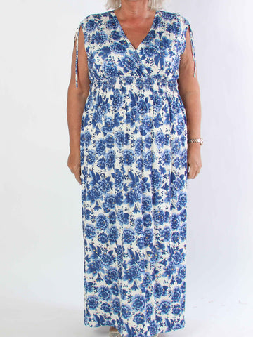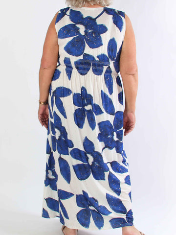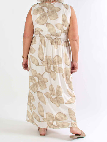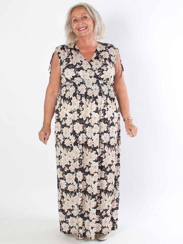 Pams Blossom Sleeveless - Lang plus size elastisk kjole i blomsterprint