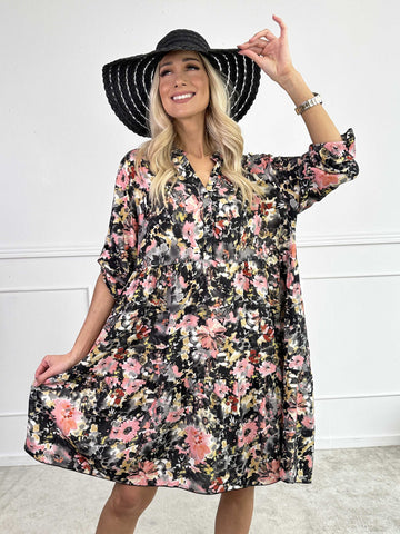 Maryam - Sød kjole i blød viskose med blomsterprint