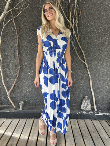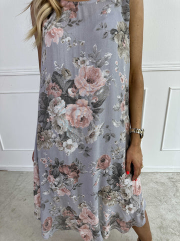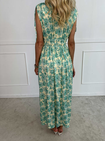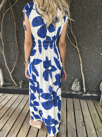 Pams Blossom Sleeveless - Lang elastisk kjole i blomsterprint