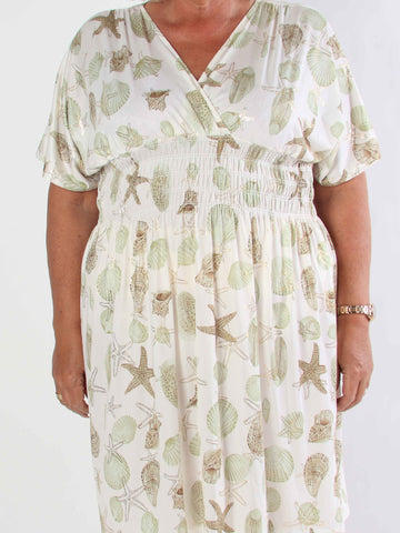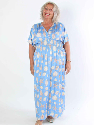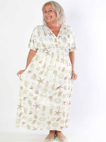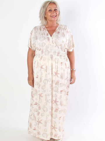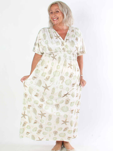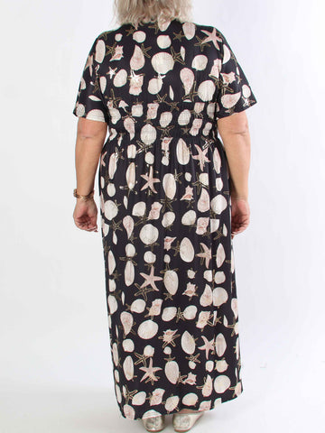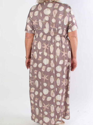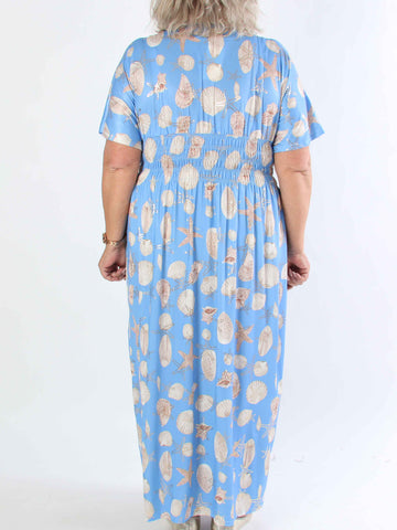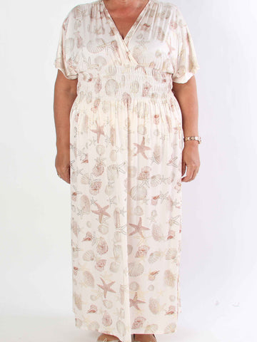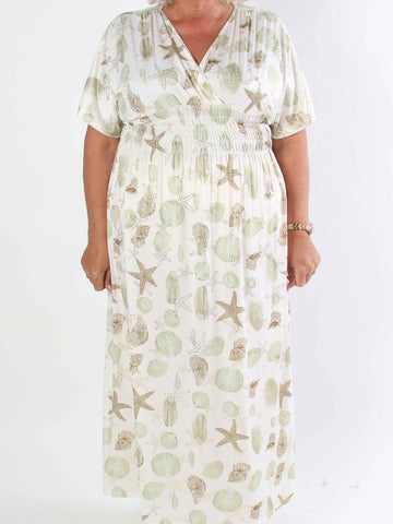 Pams Beach - Lang elastisk plus size kjole med muslinge motiver