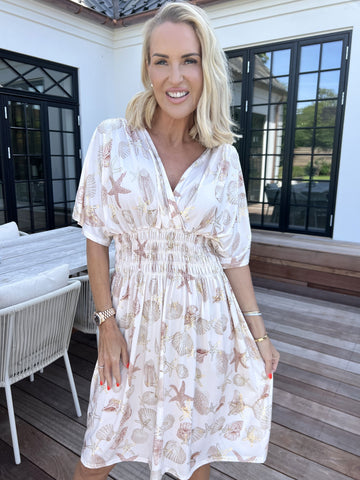 Pams Beach Short - Elastisk kjole med muslinge motiver