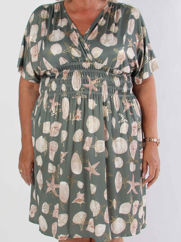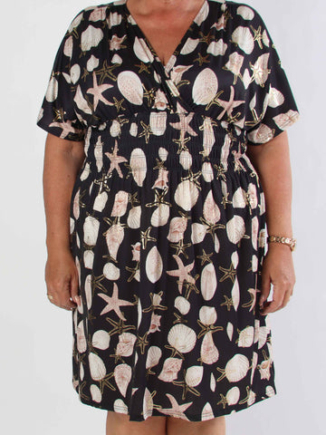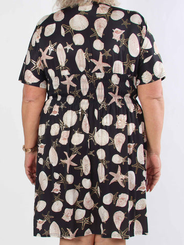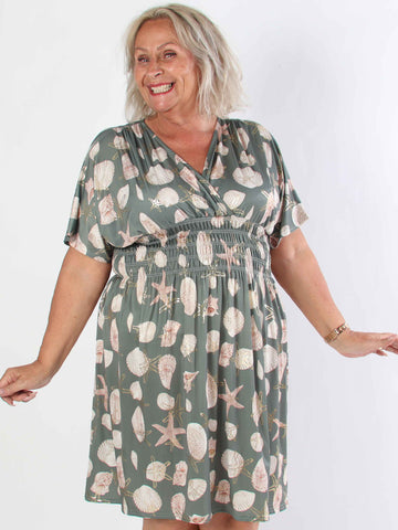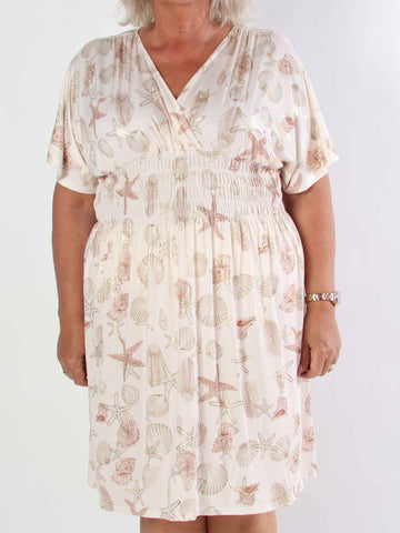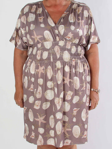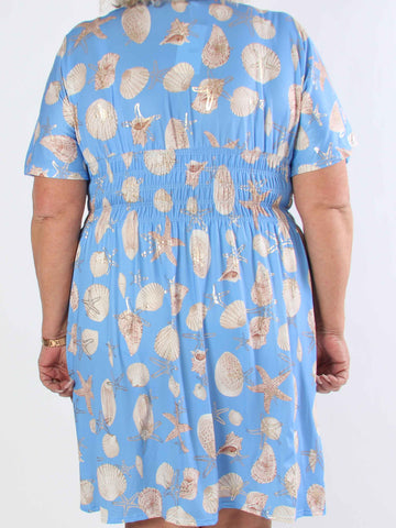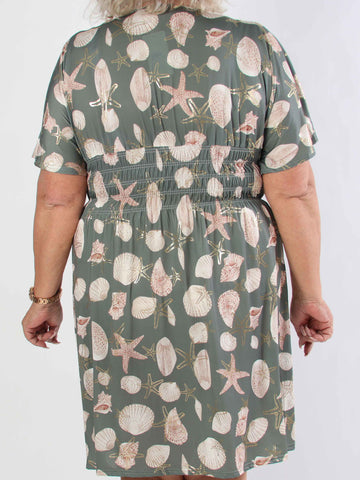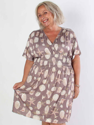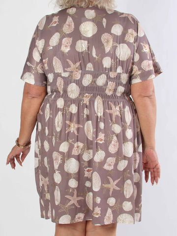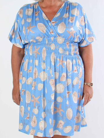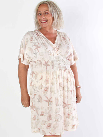 Pams Beach Short - Elastisk plus size kjole med muslinge motiver