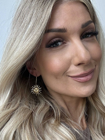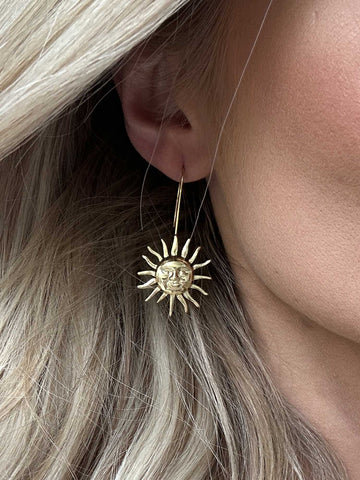 Robyn - Guldfarvede øreringe med sol vedhæng