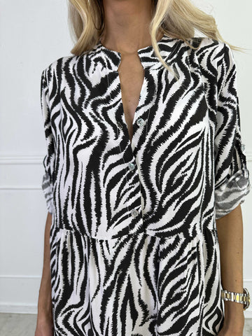 Dotti Zebra - Stribet kjole i viskose med lag på lag look