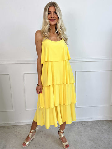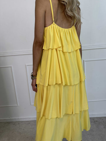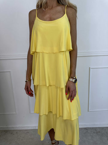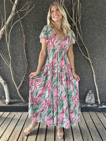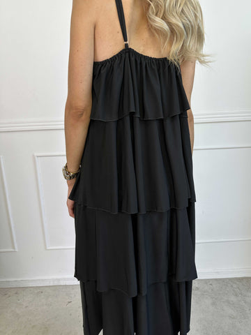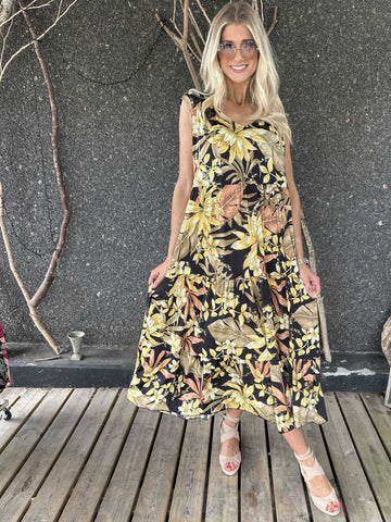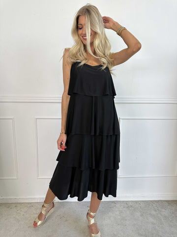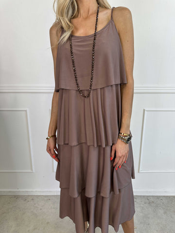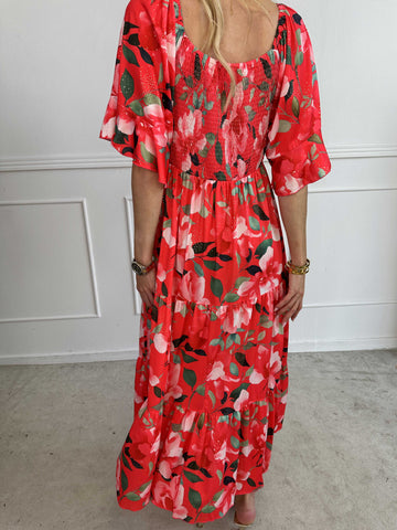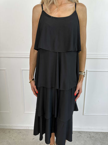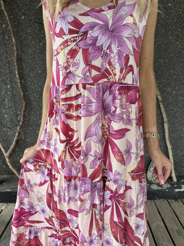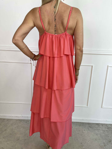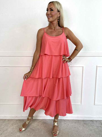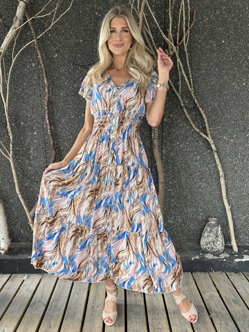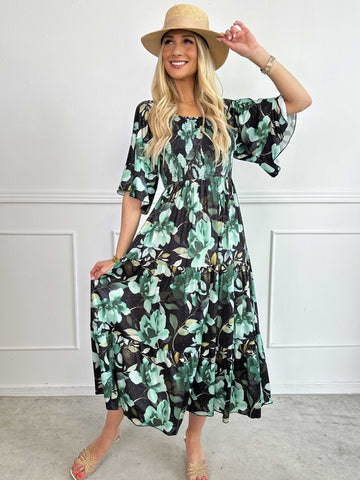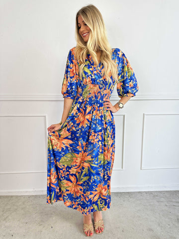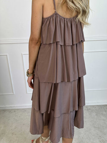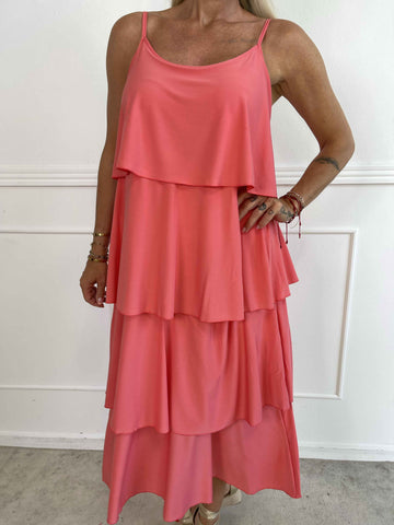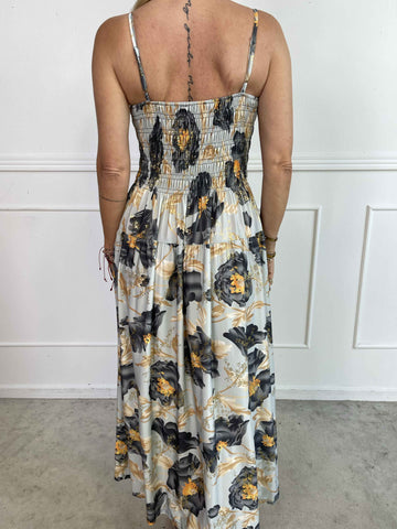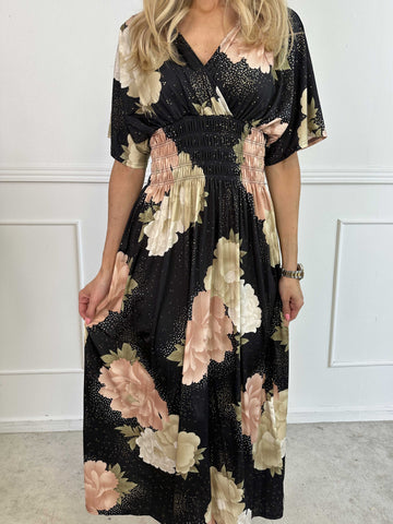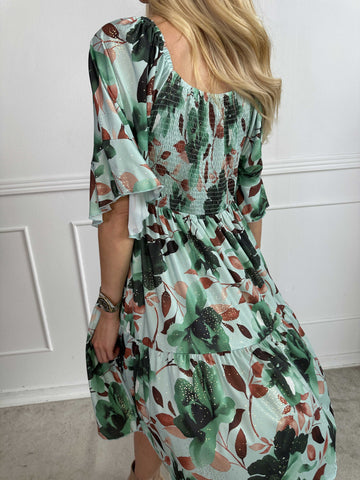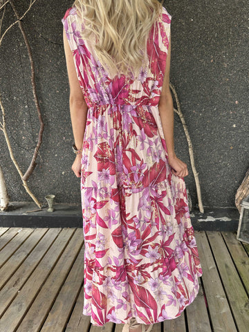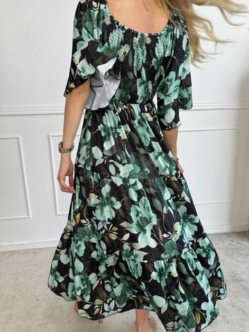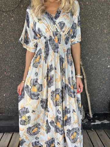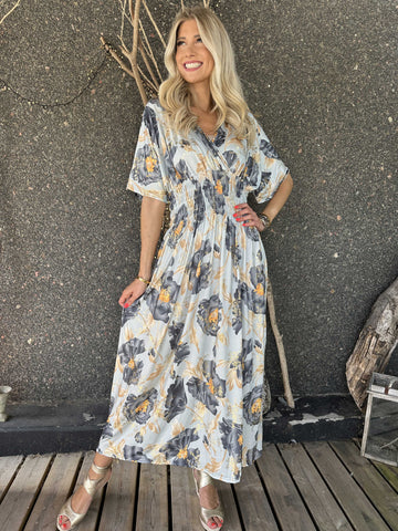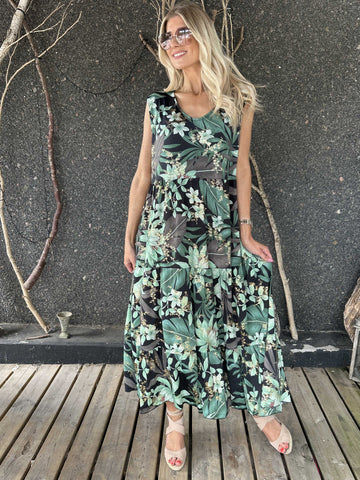 Karini - Lang elastisk blomstret kjole med lag på lag look