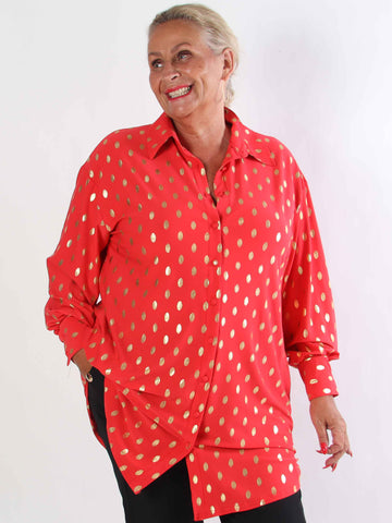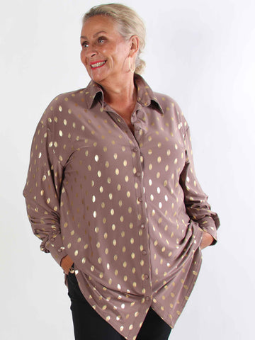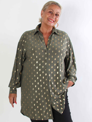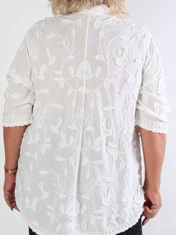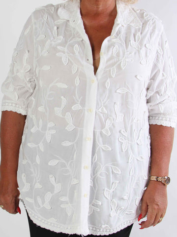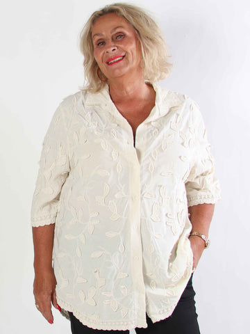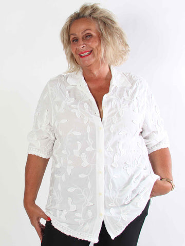 Mette - Plus size skjorte i blød bomuld med bladmotiver