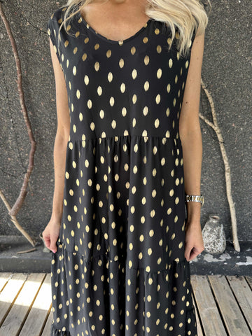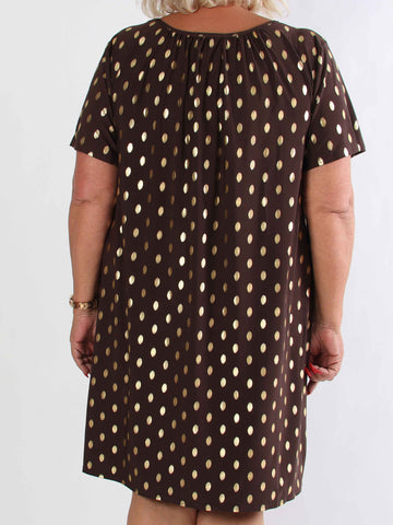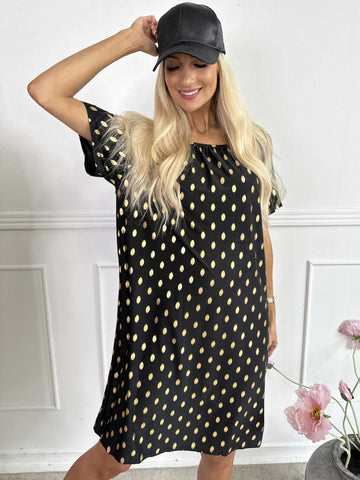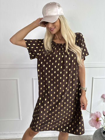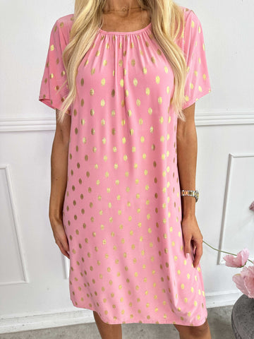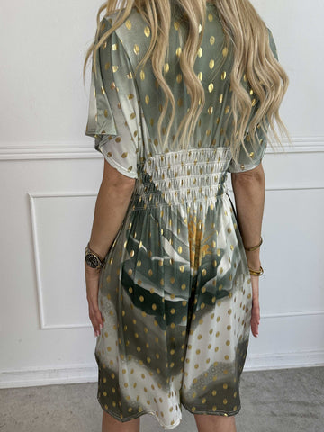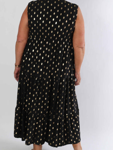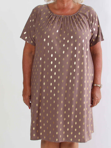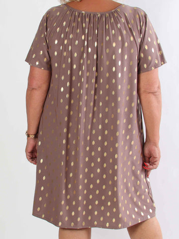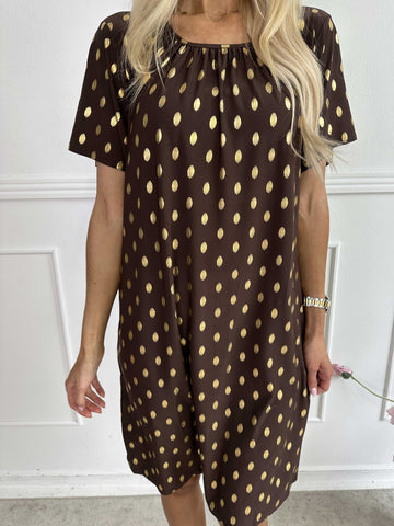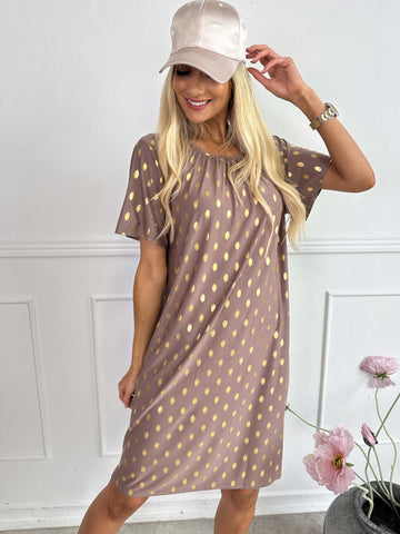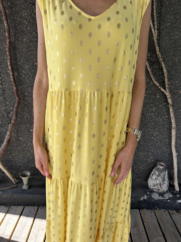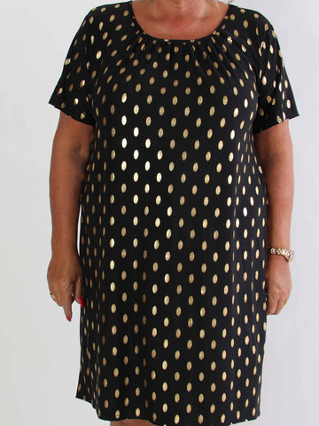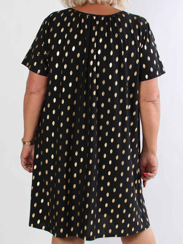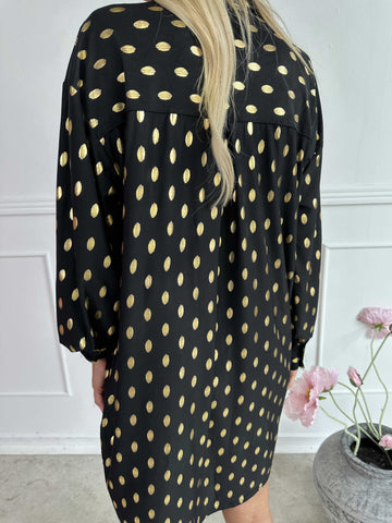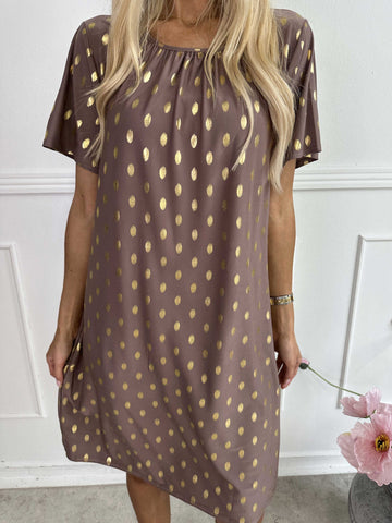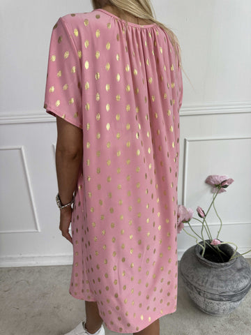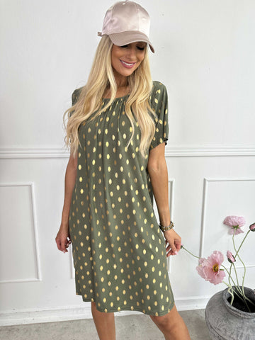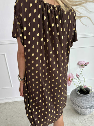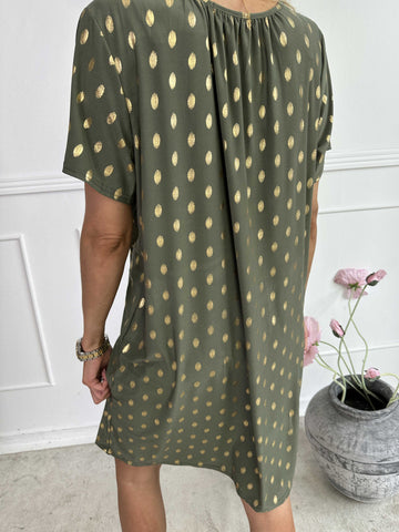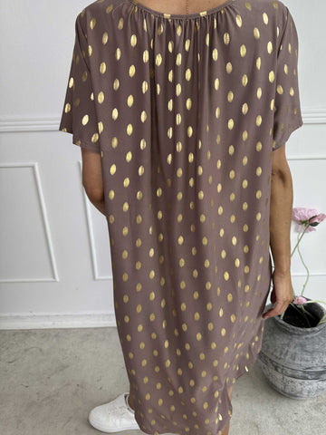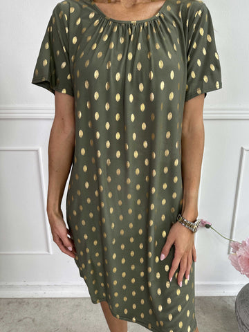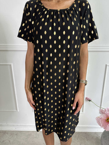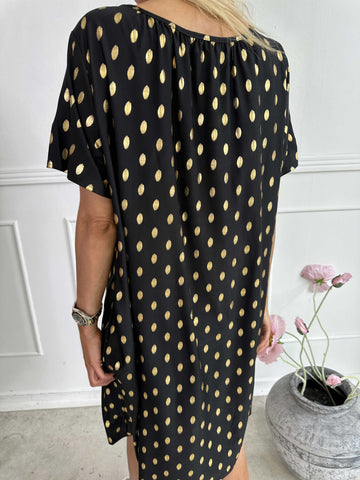 Miravi Gold - Løs kjole i elastisk stof med guld dutter