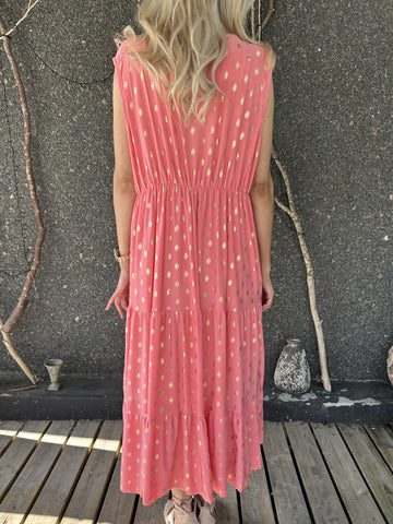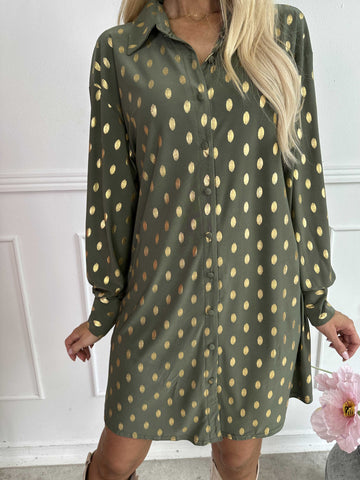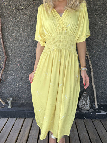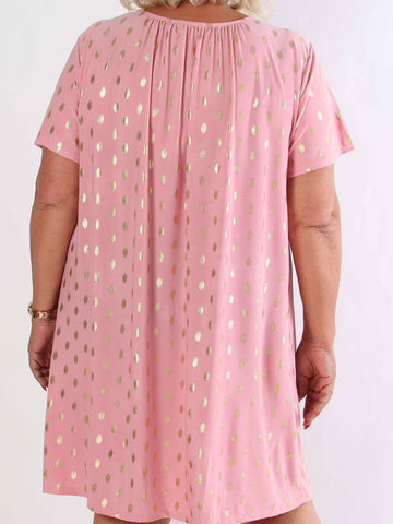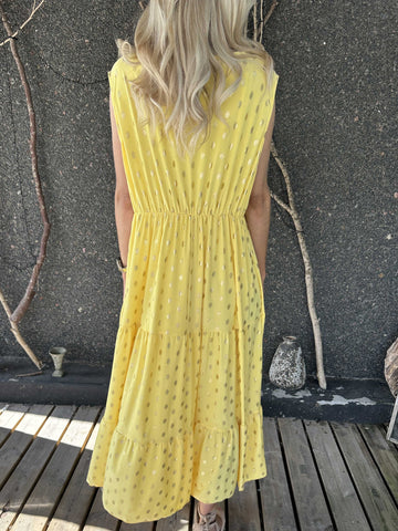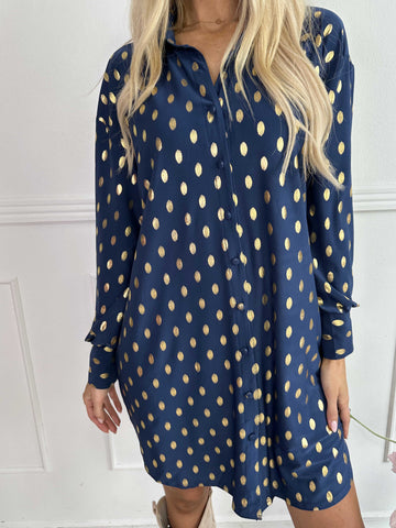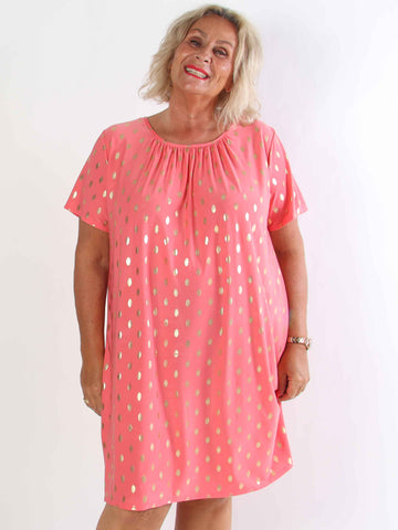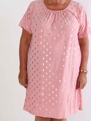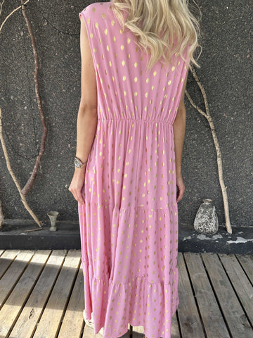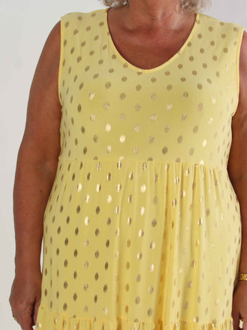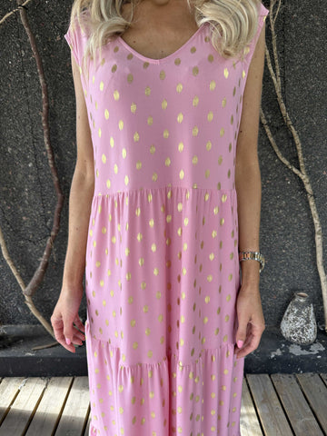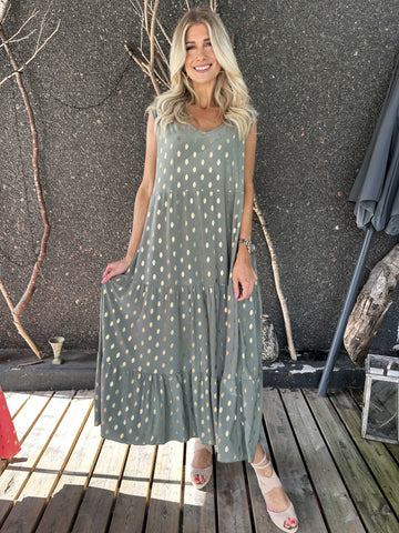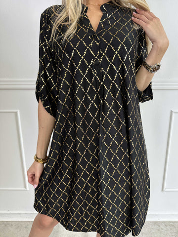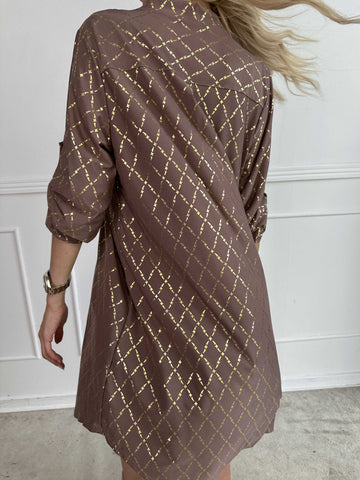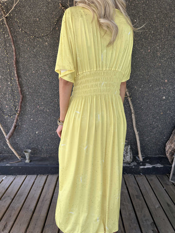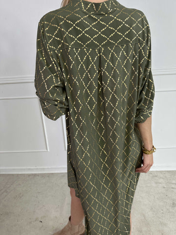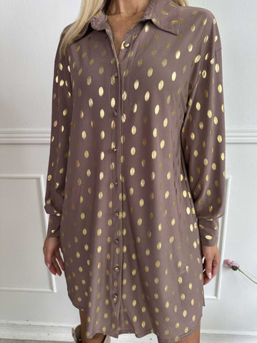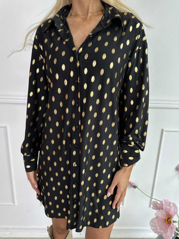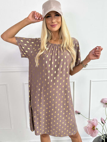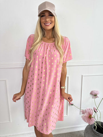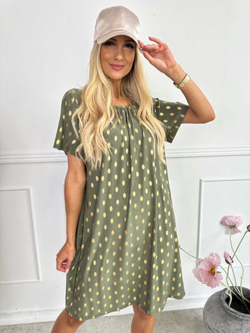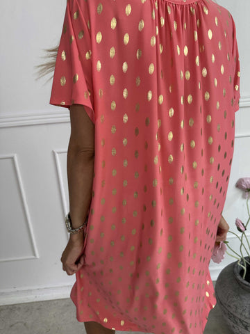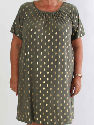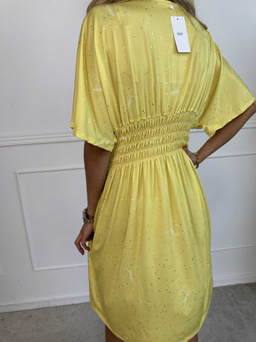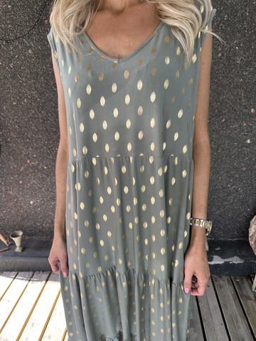Miravi Gold - Løs kjole i elastisk stof med guld dutter