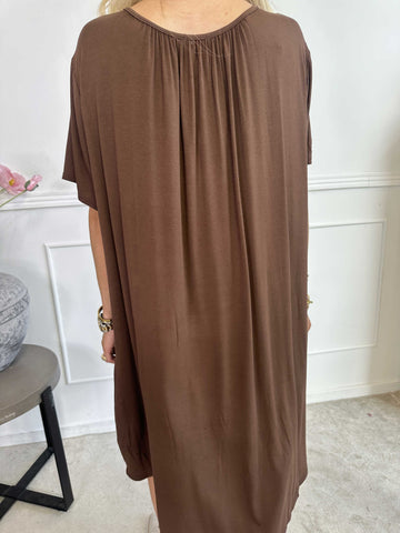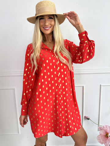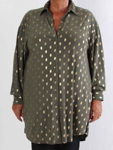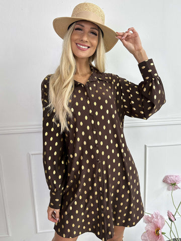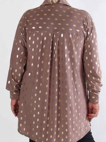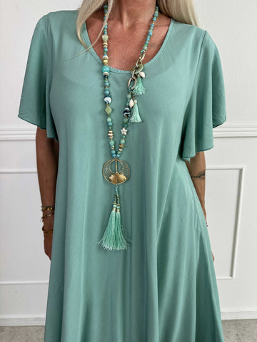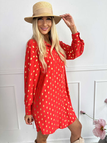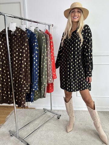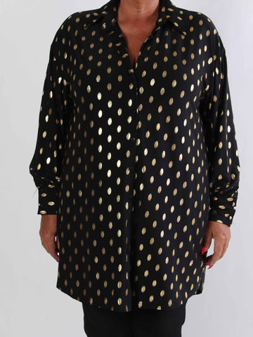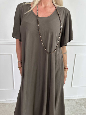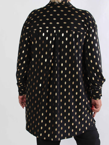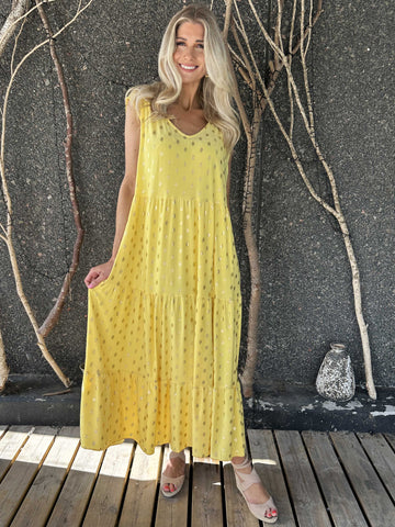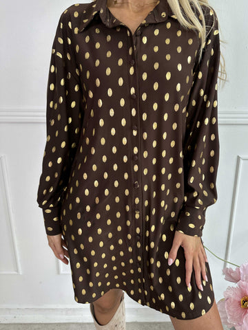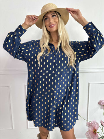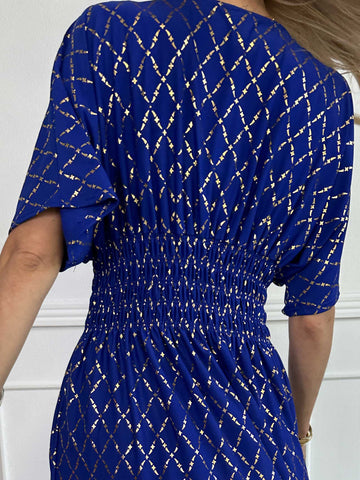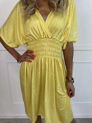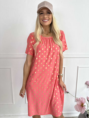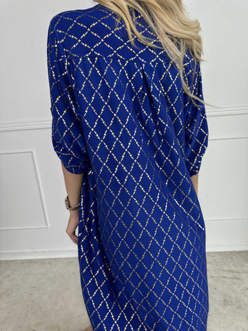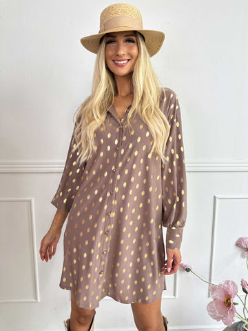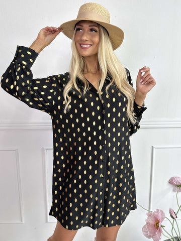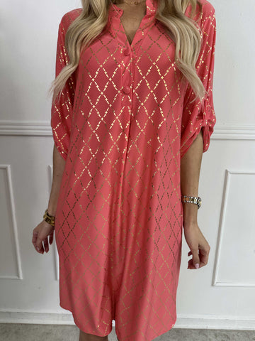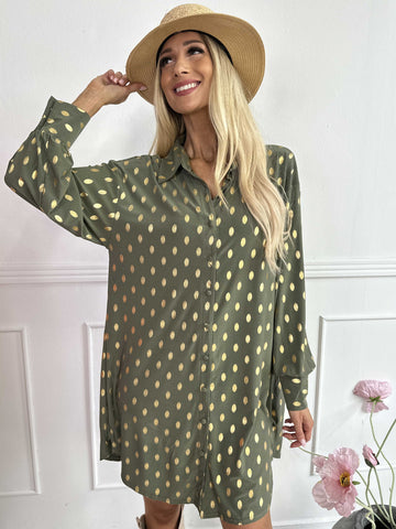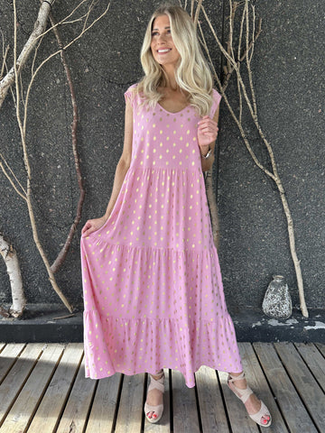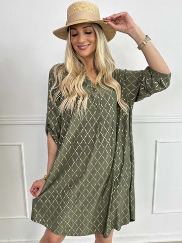 Miravi Gold - Løs kjole i elastisk stof med guld dutter
