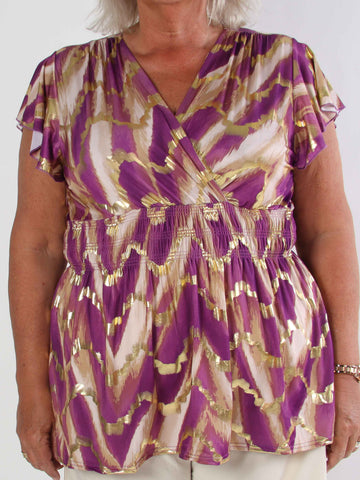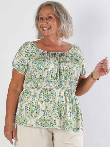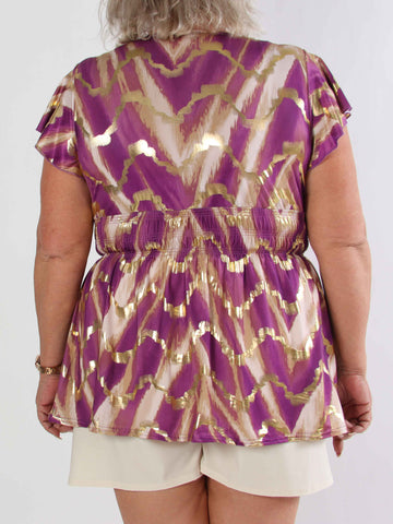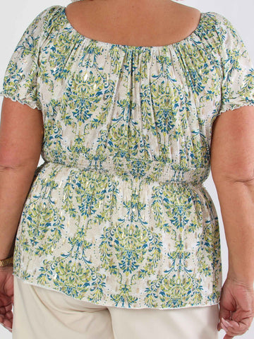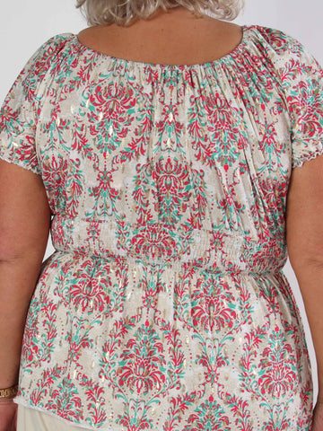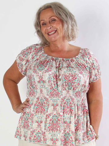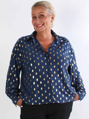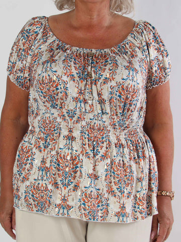 Cora Royal Shirt - Sød elastisk plus size bluse med smock under brystet
