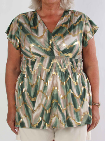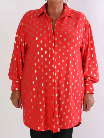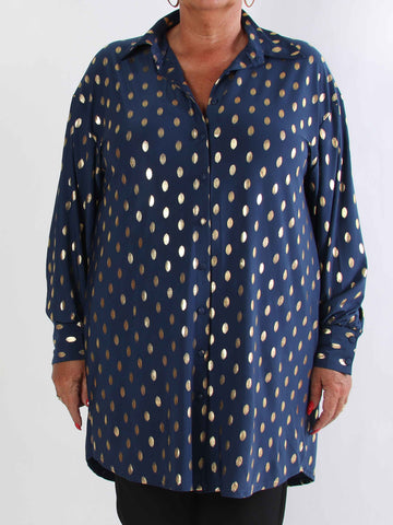 Pams Wave Shirt - Sød plus size tunika i fint med print med smock