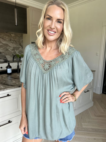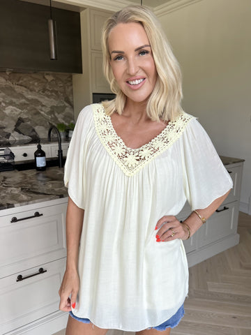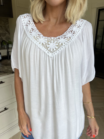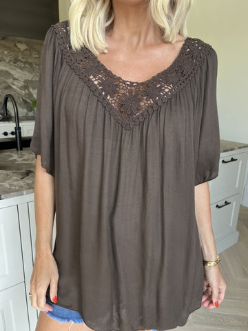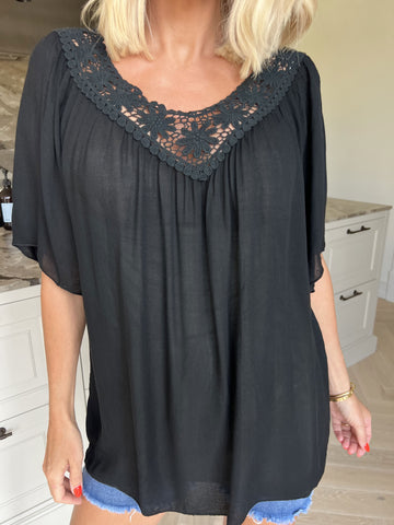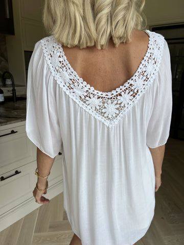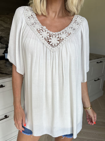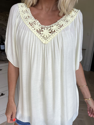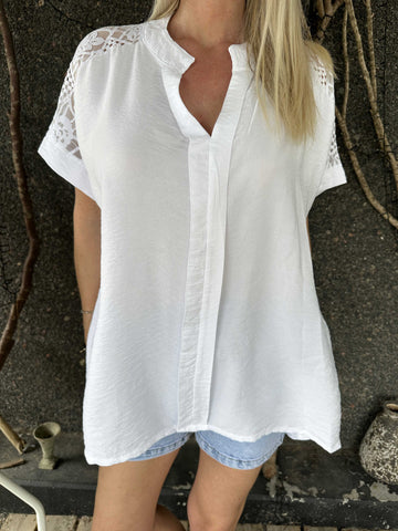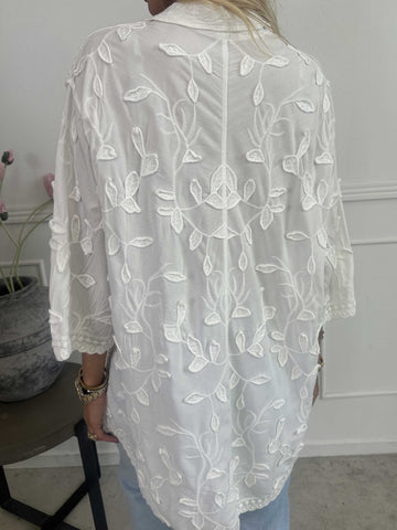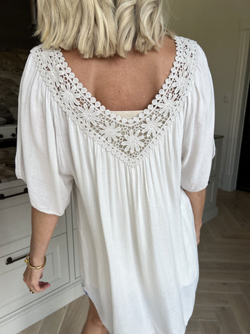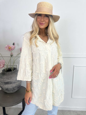 Cassandra - Sød let tunika i viskose med broderet udskæring