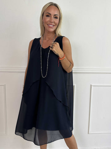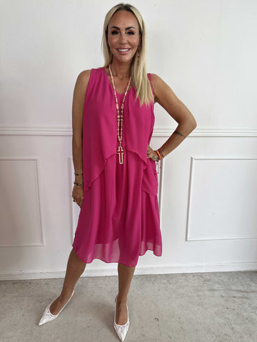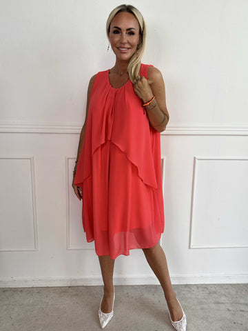Chanelli - Sød plus size kjole med chiffon flæselag