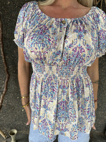 Cora Royal Shirt - Sød elastisk bluse med smock under brystet