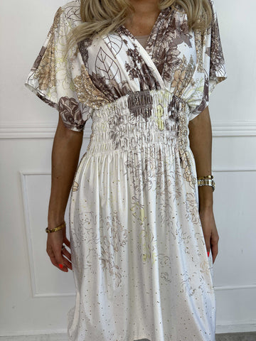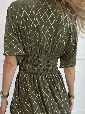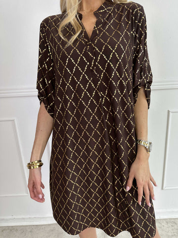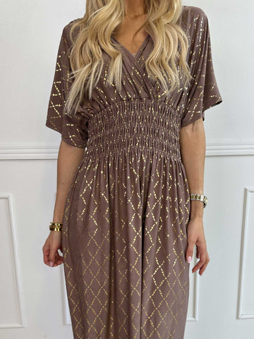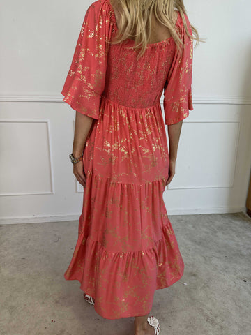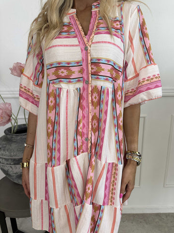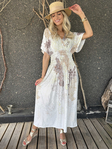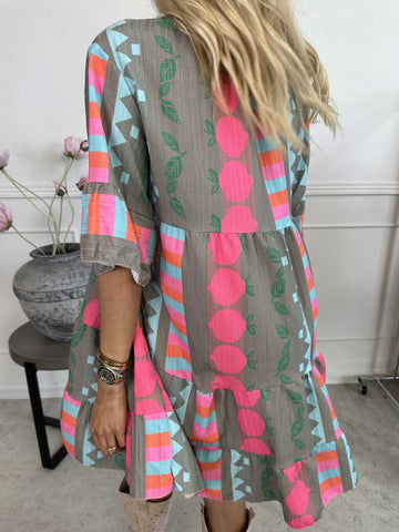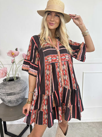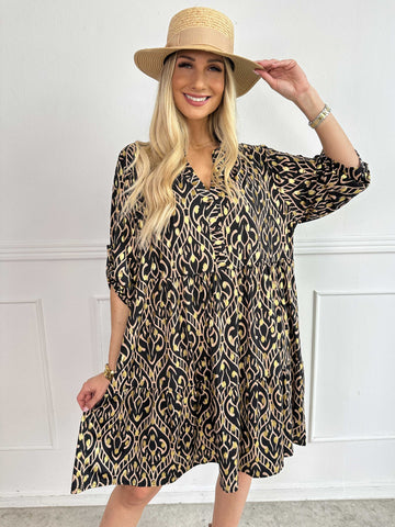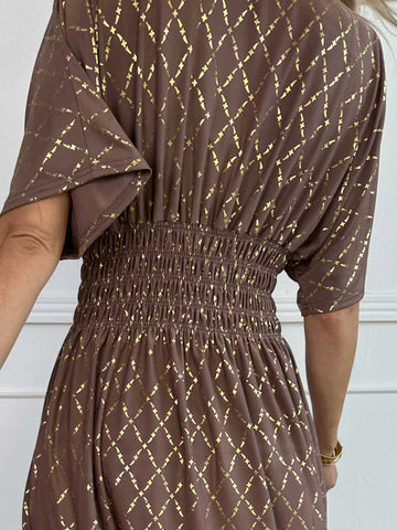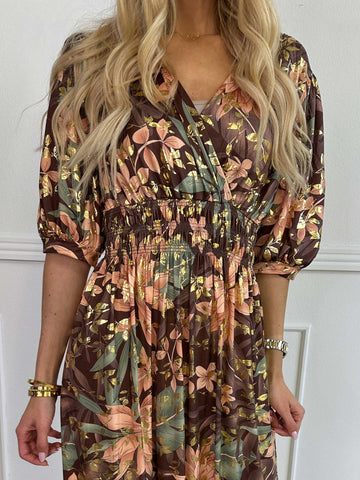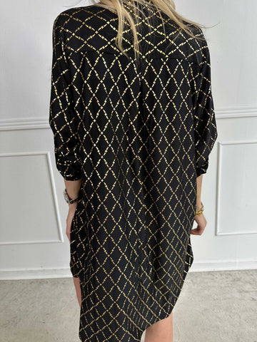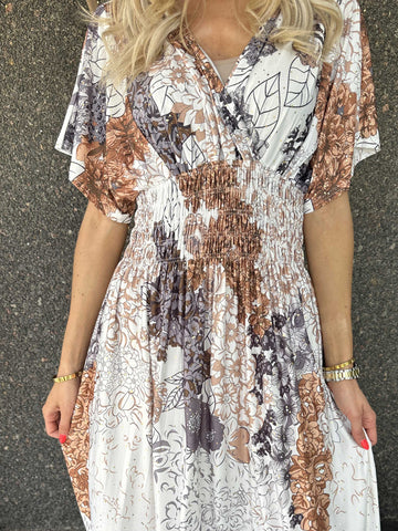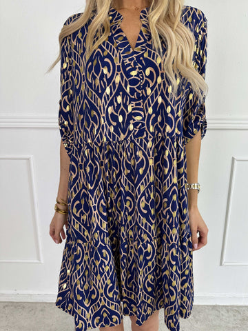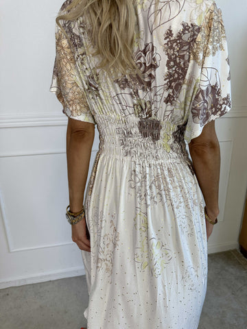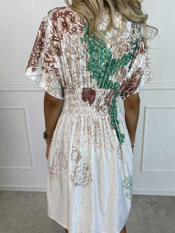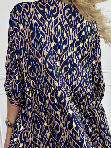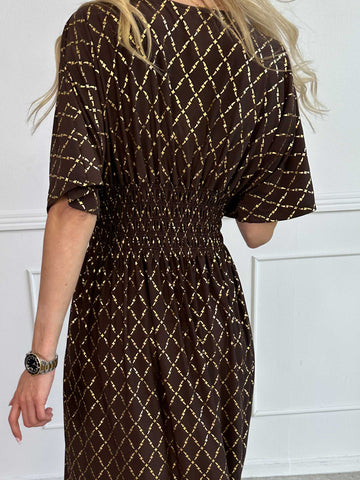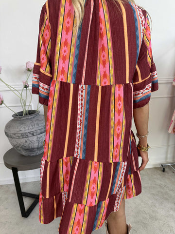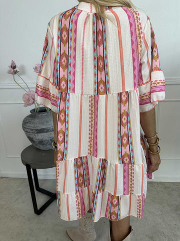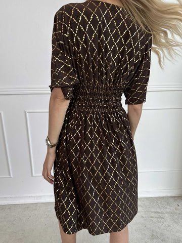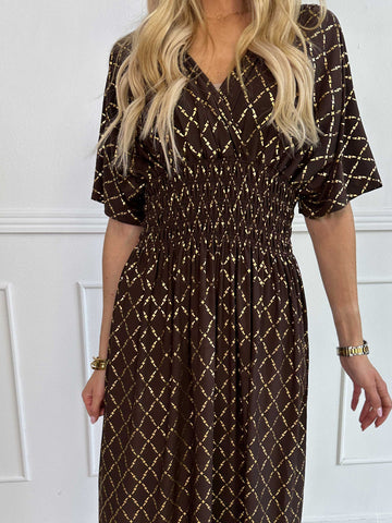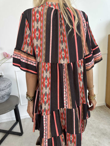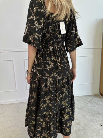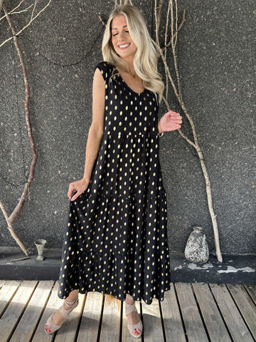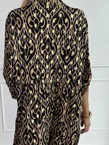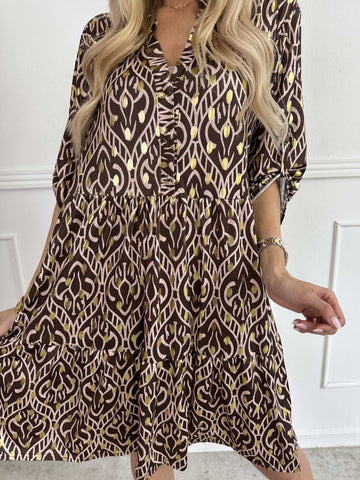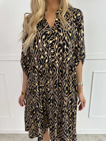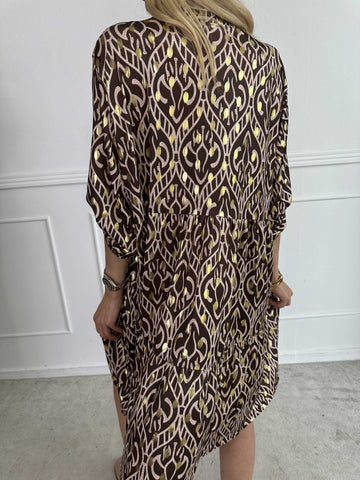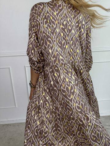 Milano Boho Midi - Mønstret kjole med guld dutter og lag på lag look