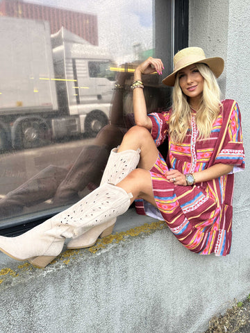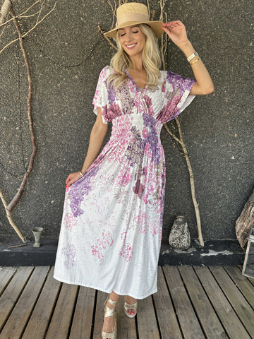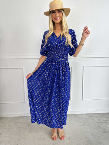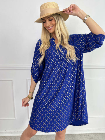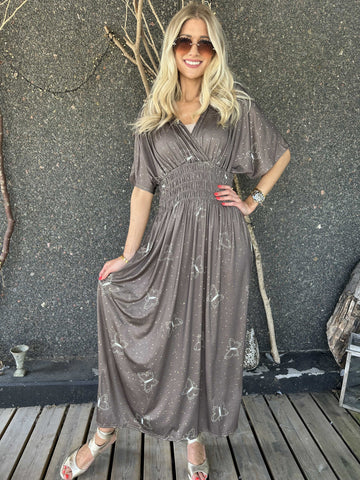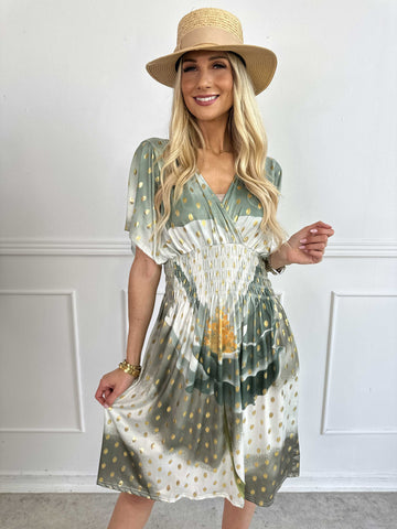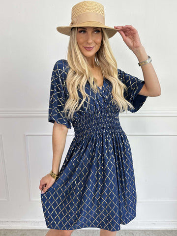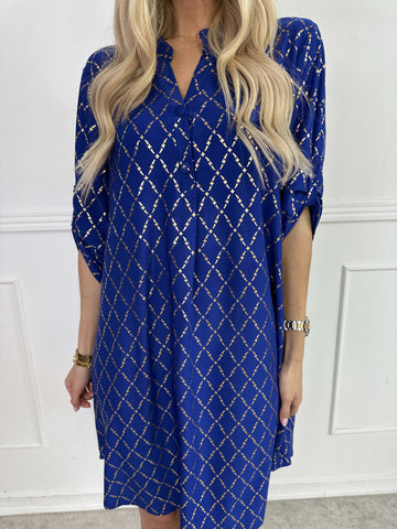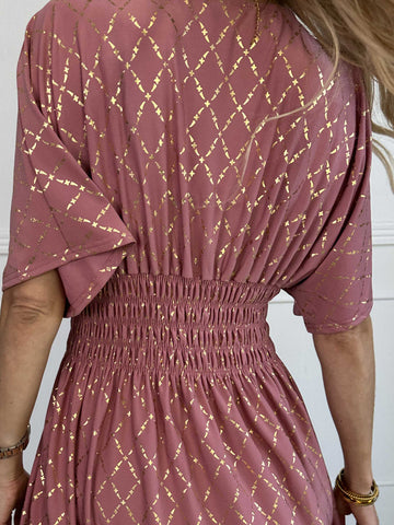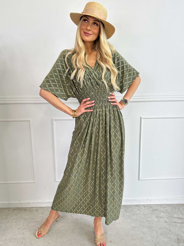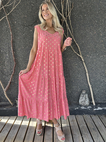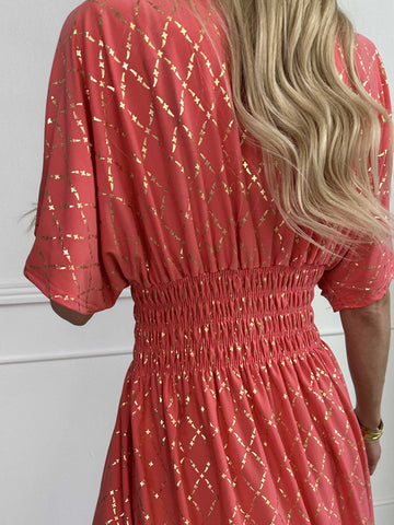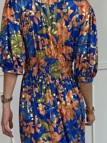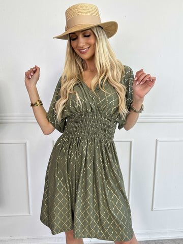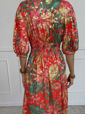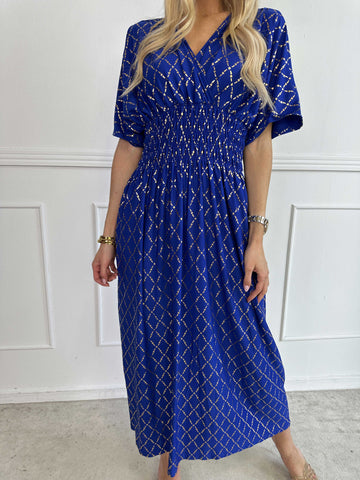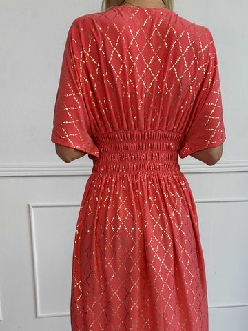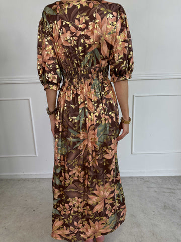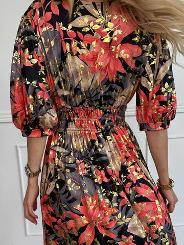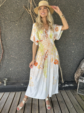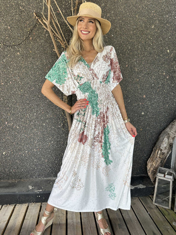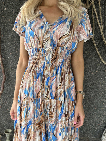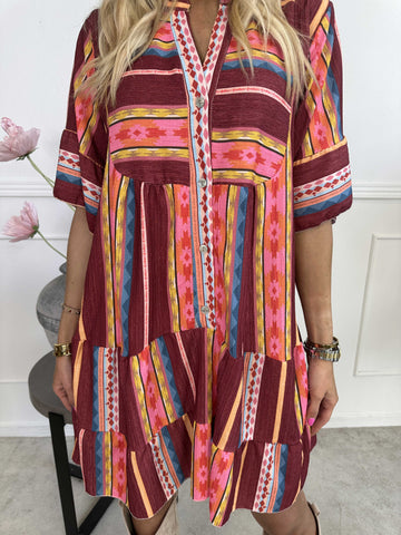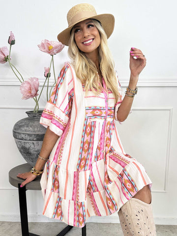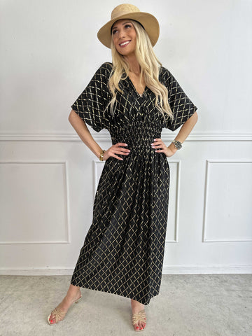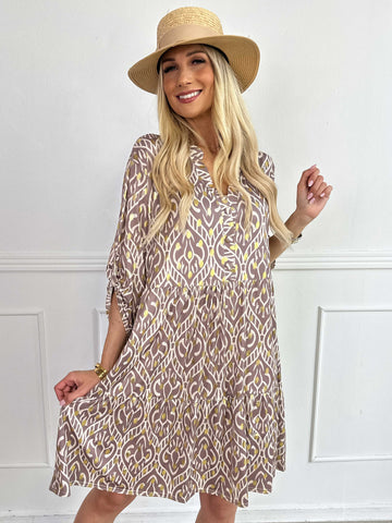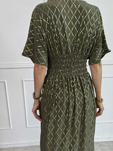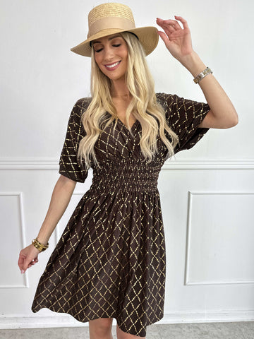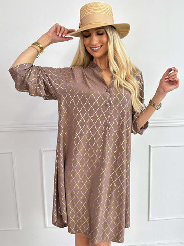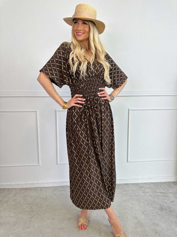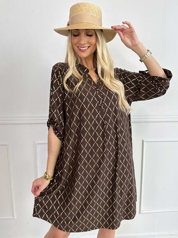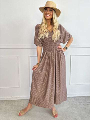 Milano Boho Midi - Mønstret kjole med guld dutter og lag på lag look