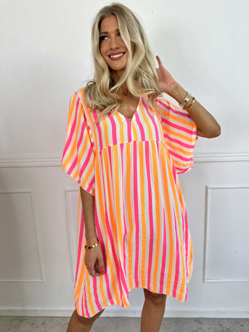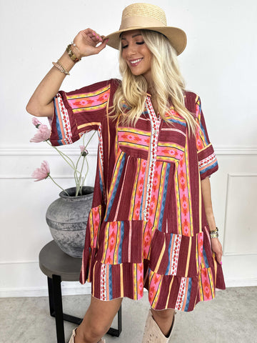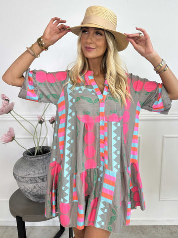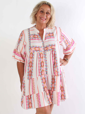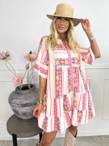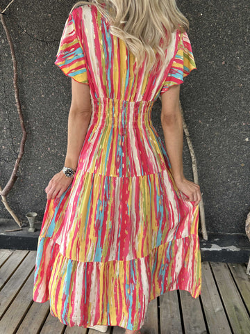 Pams Coachella Short - Elastisk kjole med farvet mønster