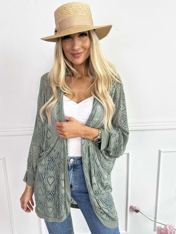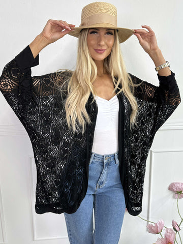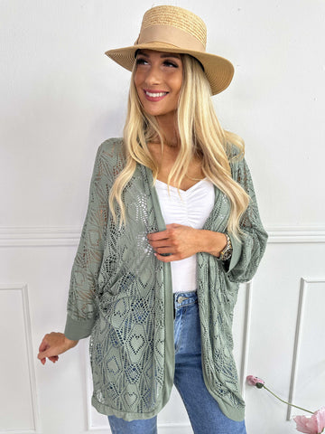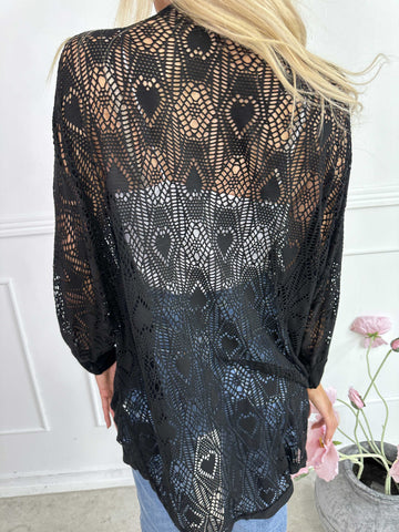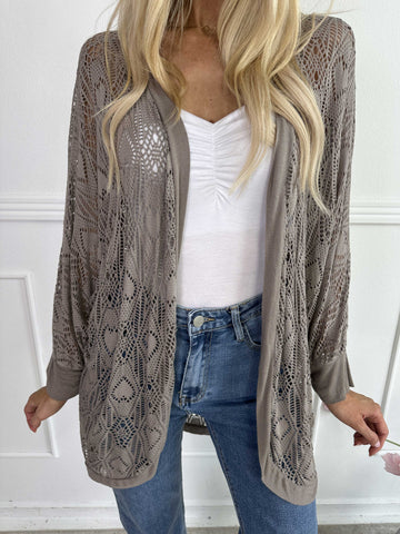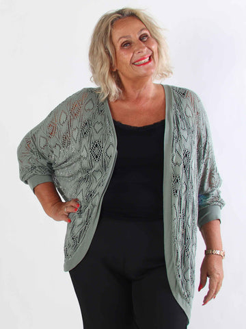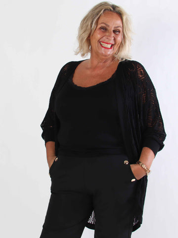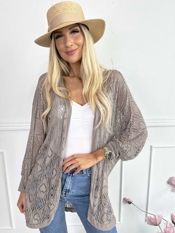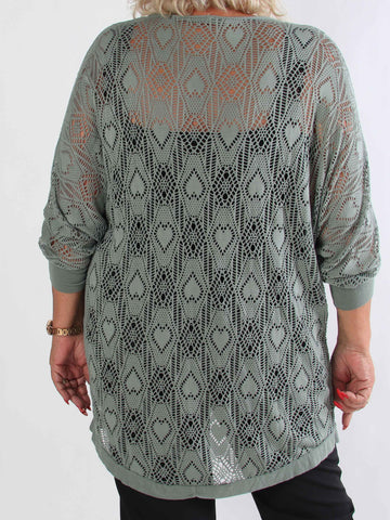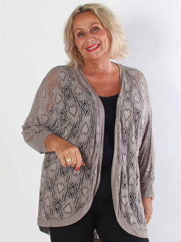 Elly Long - Let plus size cardigan i viskose med hulmønster