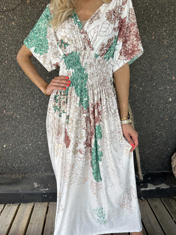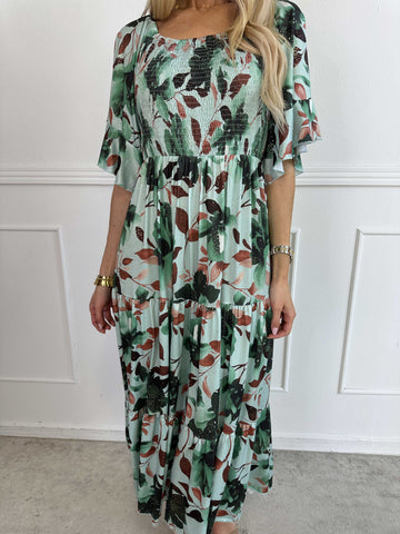 Pamina Leaf - Lang elastisk kjole med blad motiver