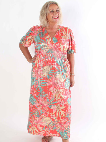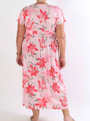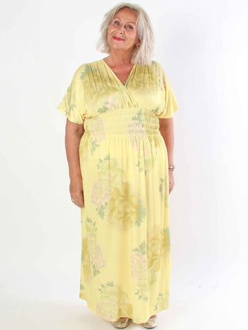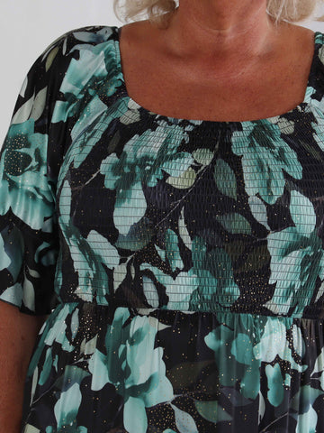 Elna Fiore - Blomstret elastisk plus size kjole med smock over brystet