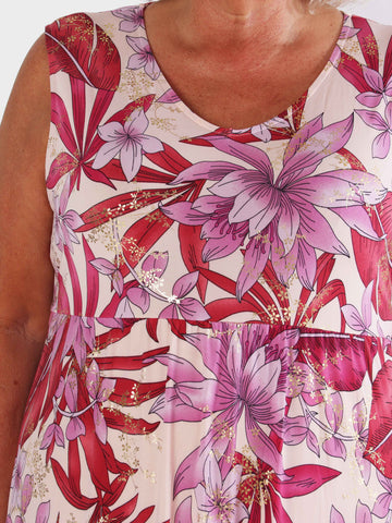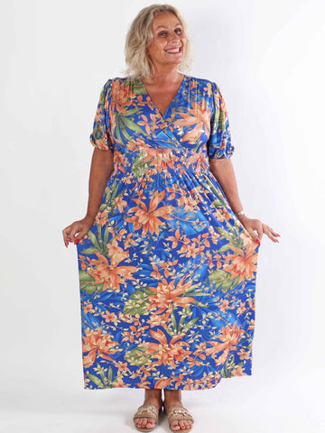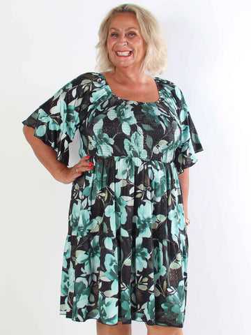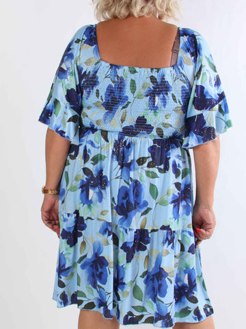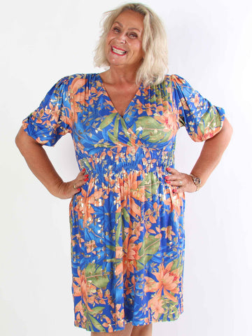 Pams Summer Short - Elastisk plus size kjole med blomstermotiver og smock