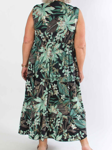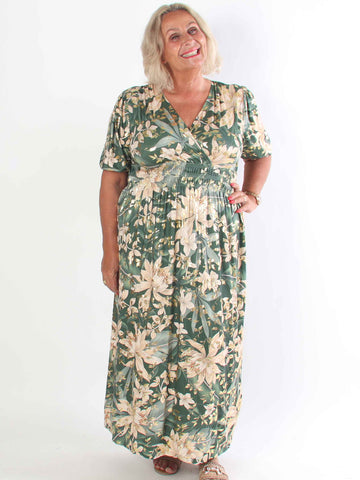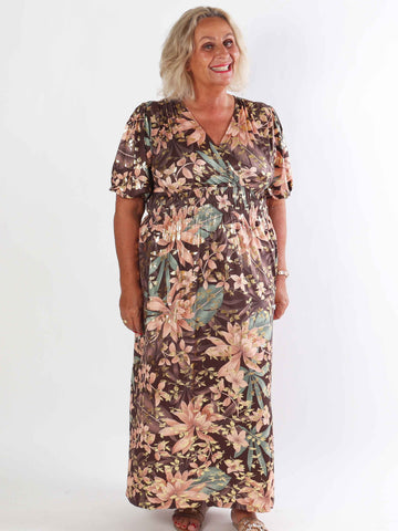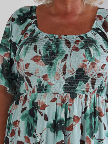 Pamina Leaf - Lang elastisk plus size kjole med blad motiver