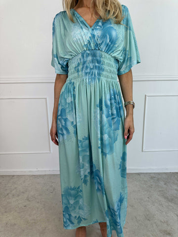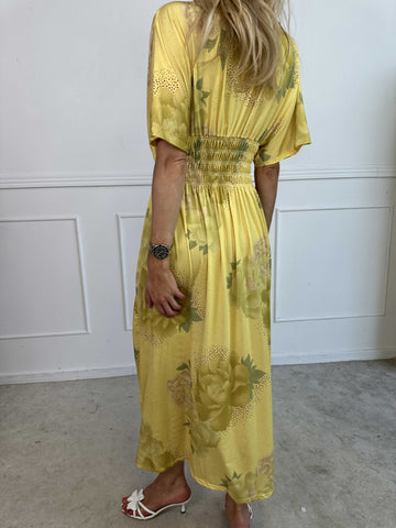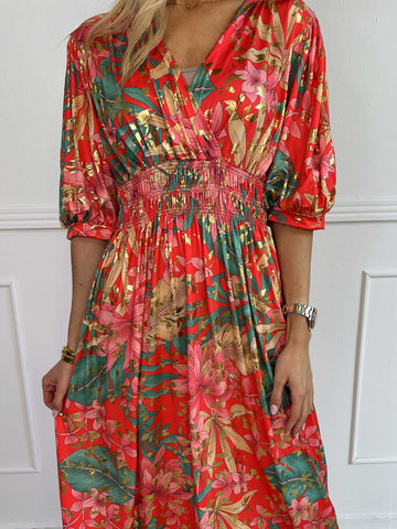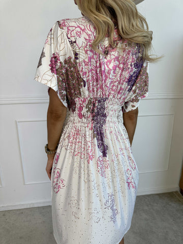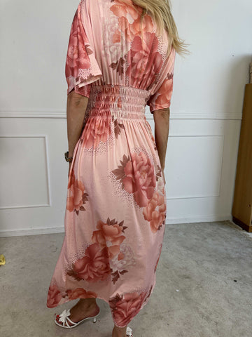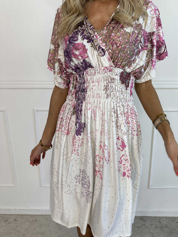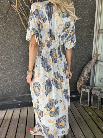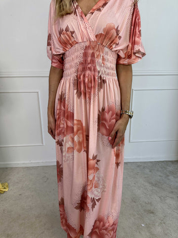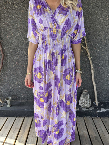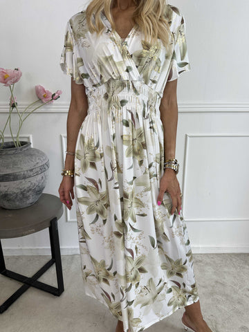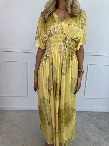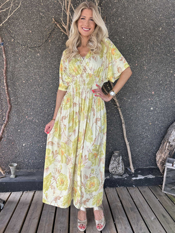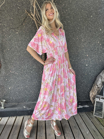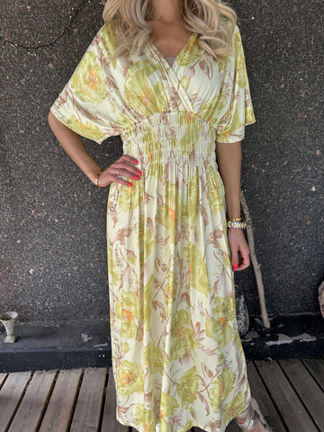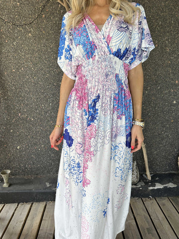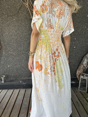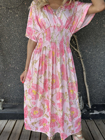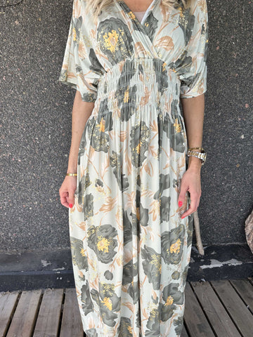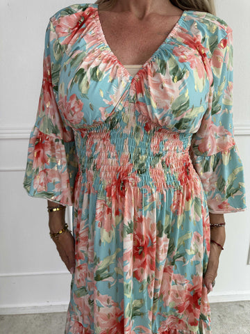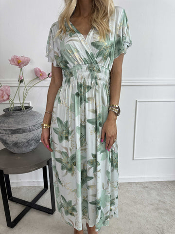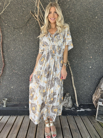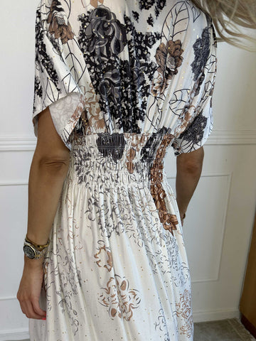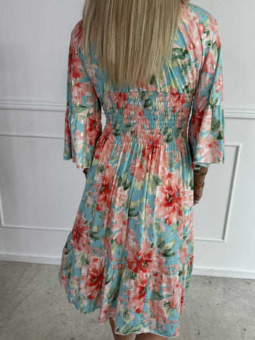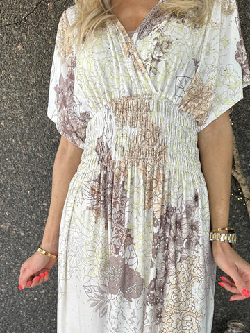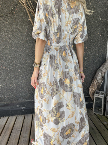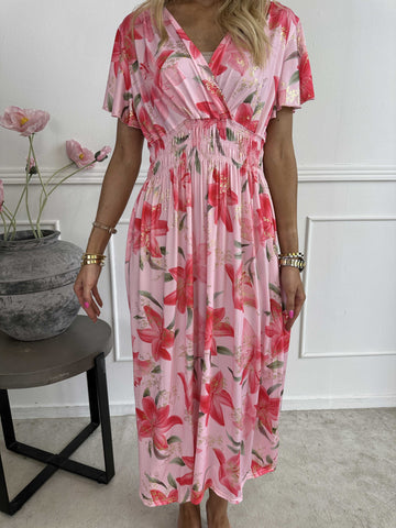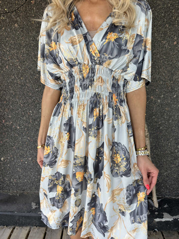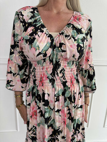 Elna Fiore - Blomstret elastisk kjole med smock over brystet