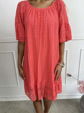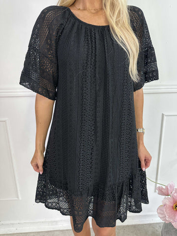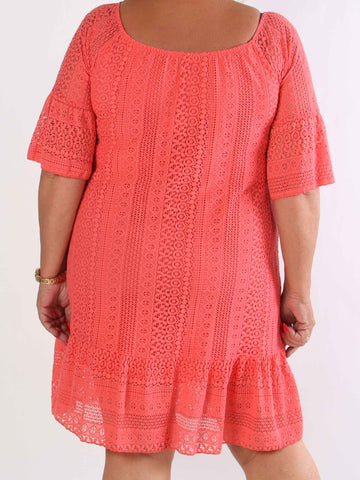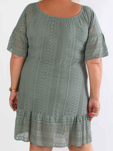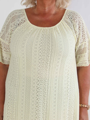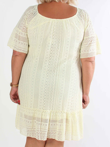 Galateia Sleeves - Plus size kjole i blød blonde i bomuld