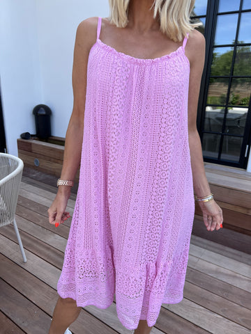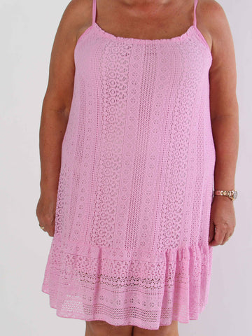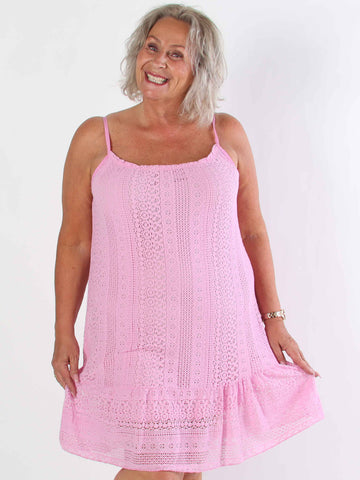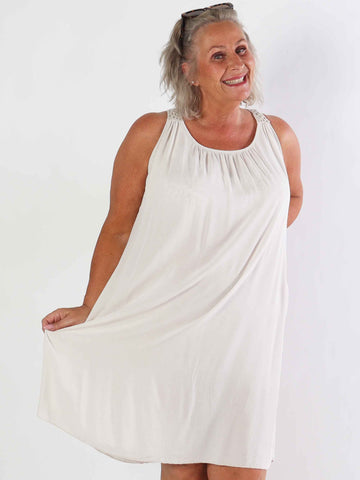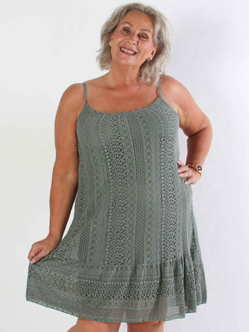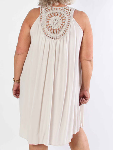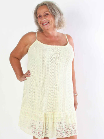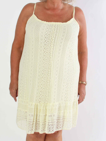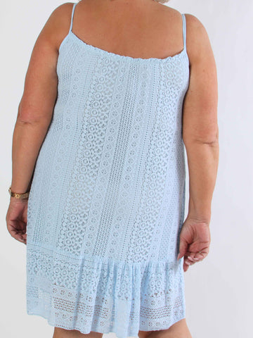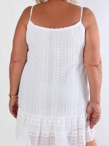 Galateia - Plus size stropkjole i blød blonde i bomuld