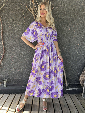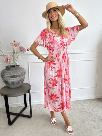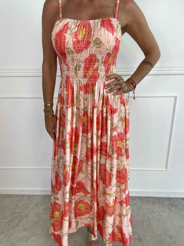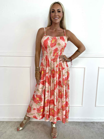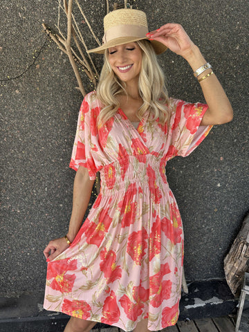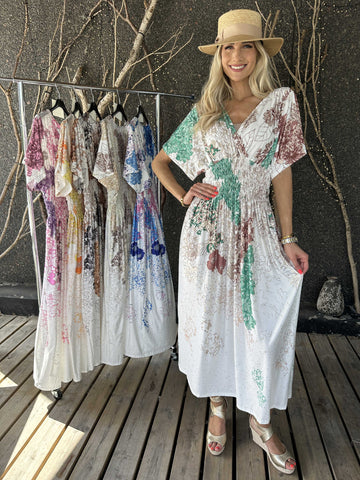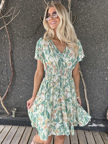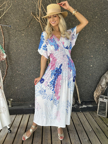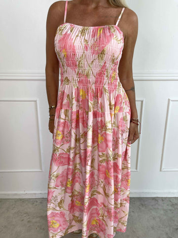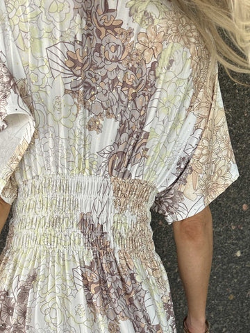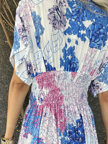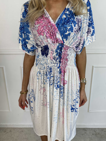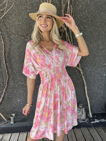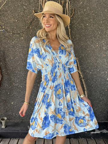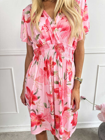 Pams Summer Short - Elastisk kjole med blomstermotiver og smock