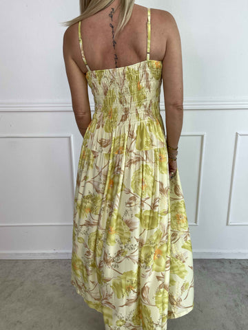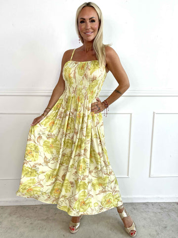 Maira Botanic - Sød elastisk stropkjole med blomsterprint og smock