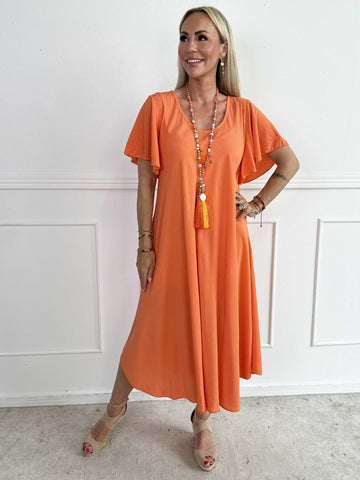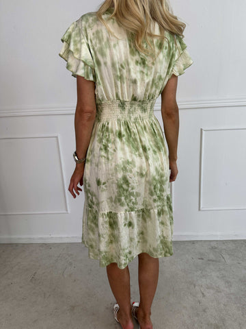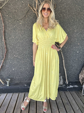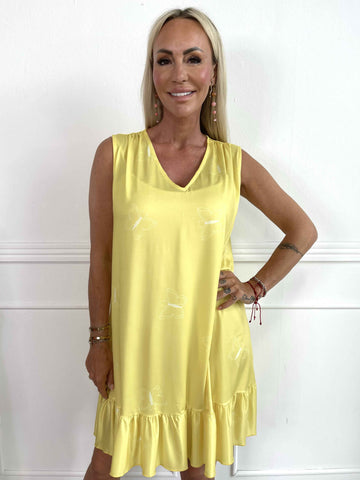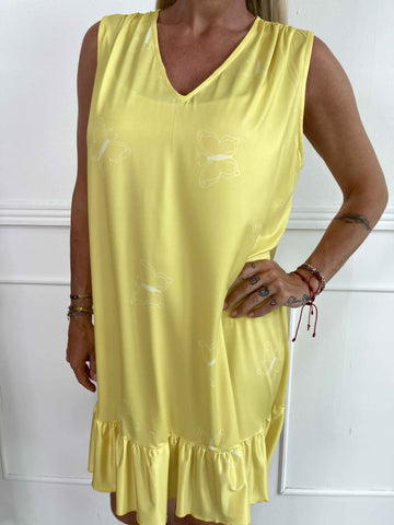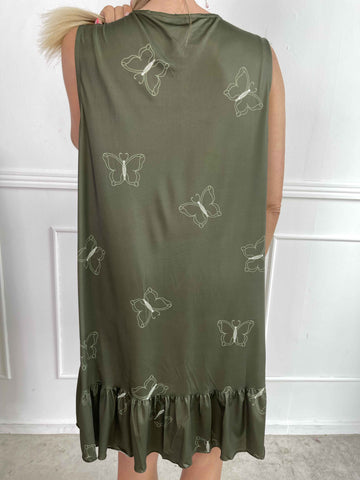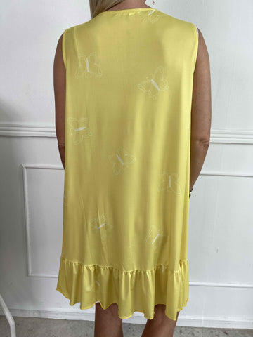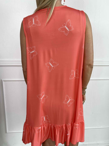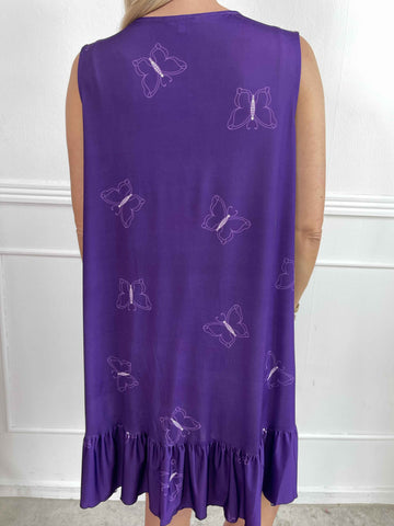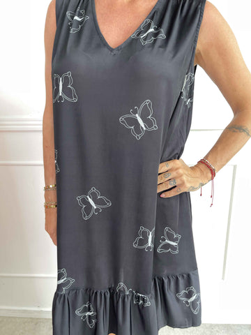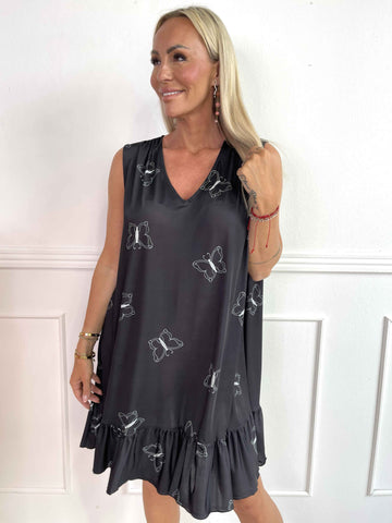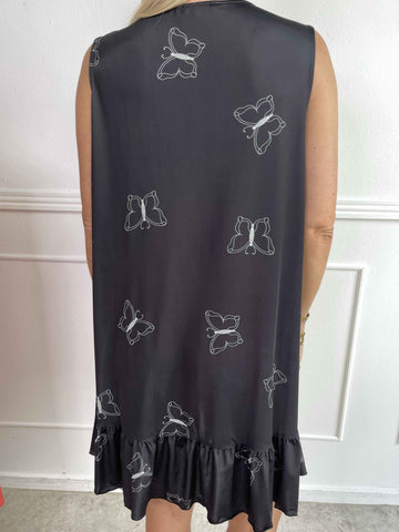 Aurelia - Sommerkjole med sommerfugleprint og flæsekant