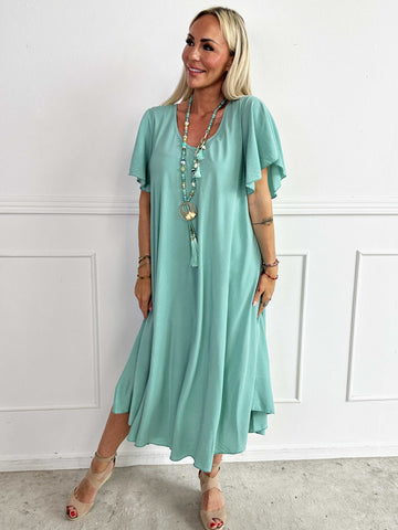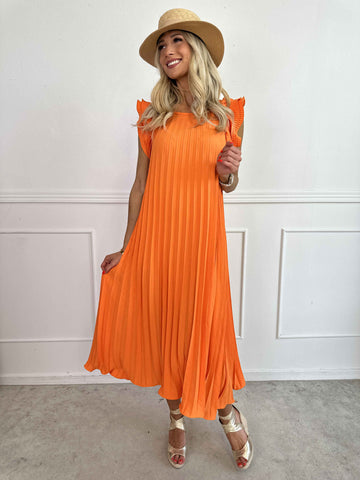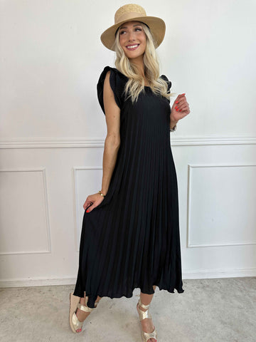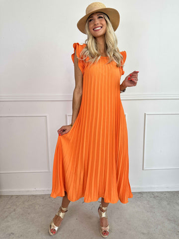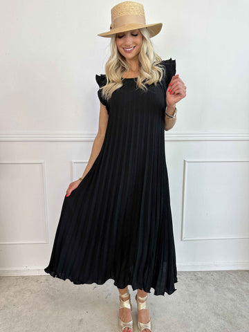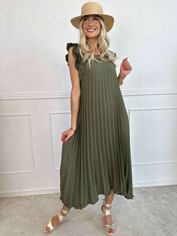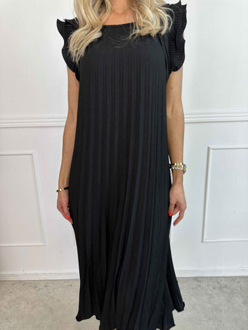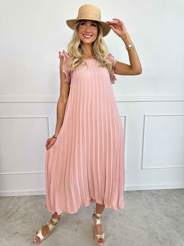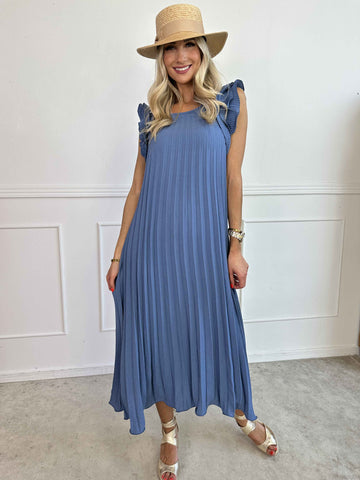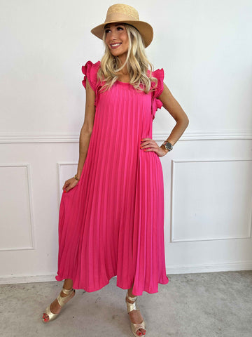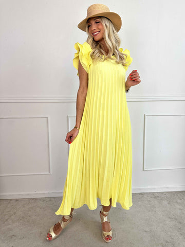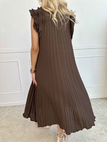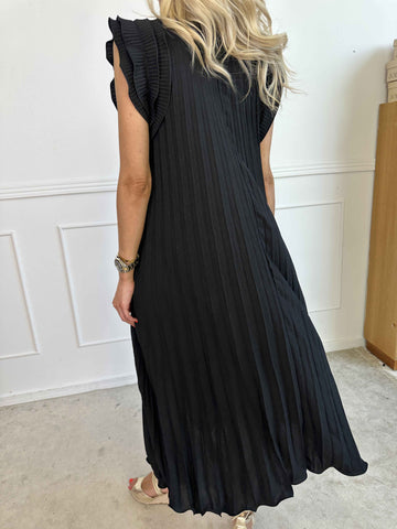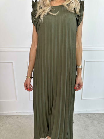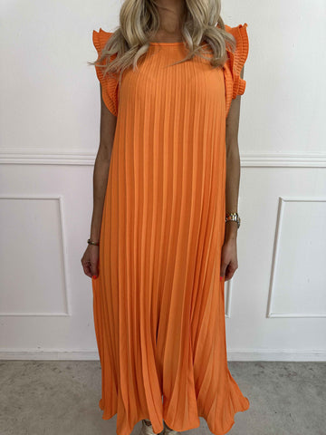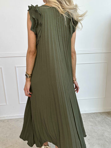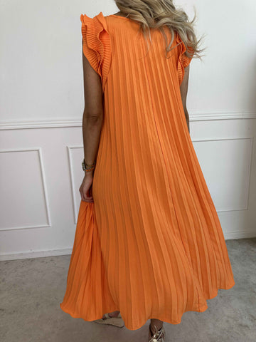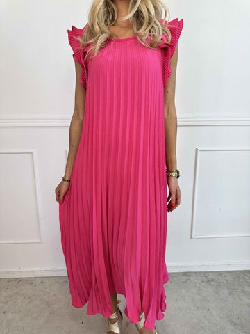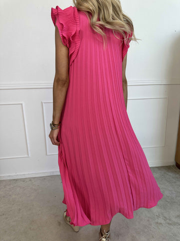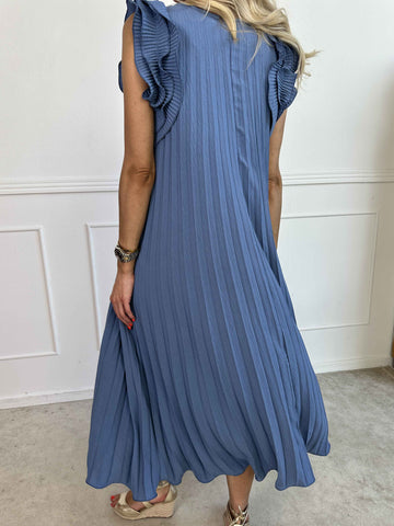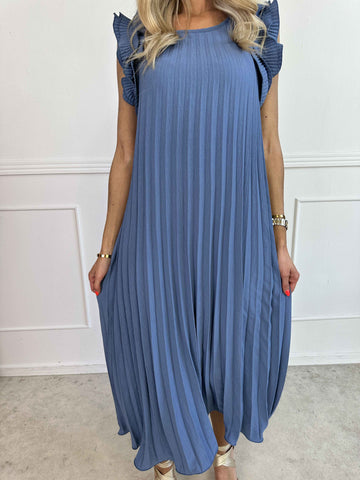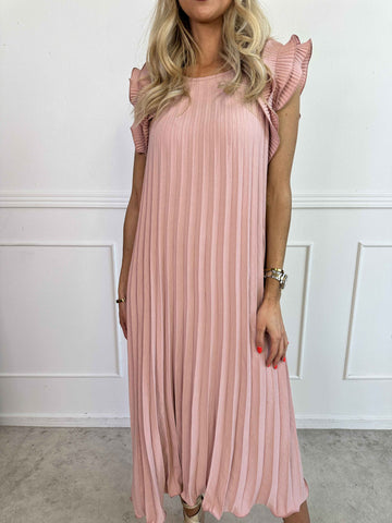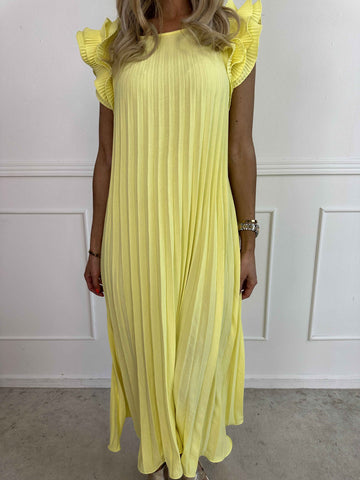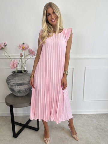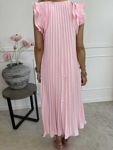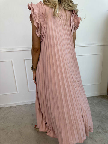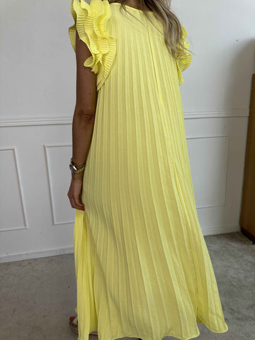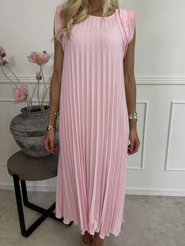 Zlata - Lang plisseret kjole med søde flæseærmer