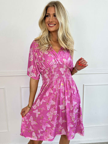 Pams Butterfly Short - Elastisk kjole med sommerfugleprint